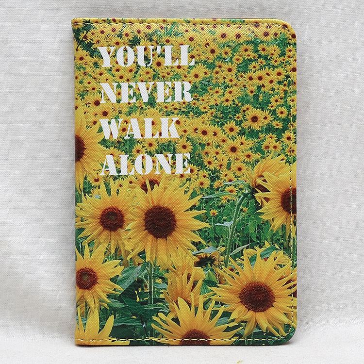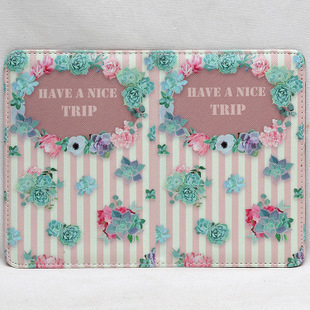 Flowers Pattern Faux Leather Passport Cover Cute Floral Travel ID Wallet Case