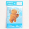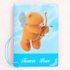 Very cute blue and pink passport cover with adroable bear angels holding cupid arrow with the phrase "Forever Love"