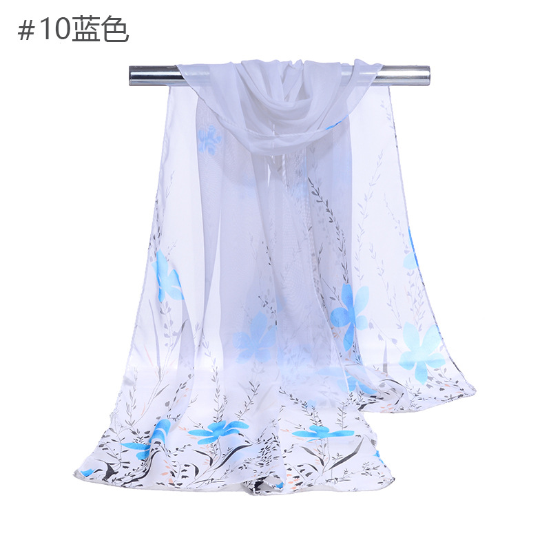 Details:Garden Flowers White Floral Ladies Scarves Chiffon Scarf Womens Shawls N175