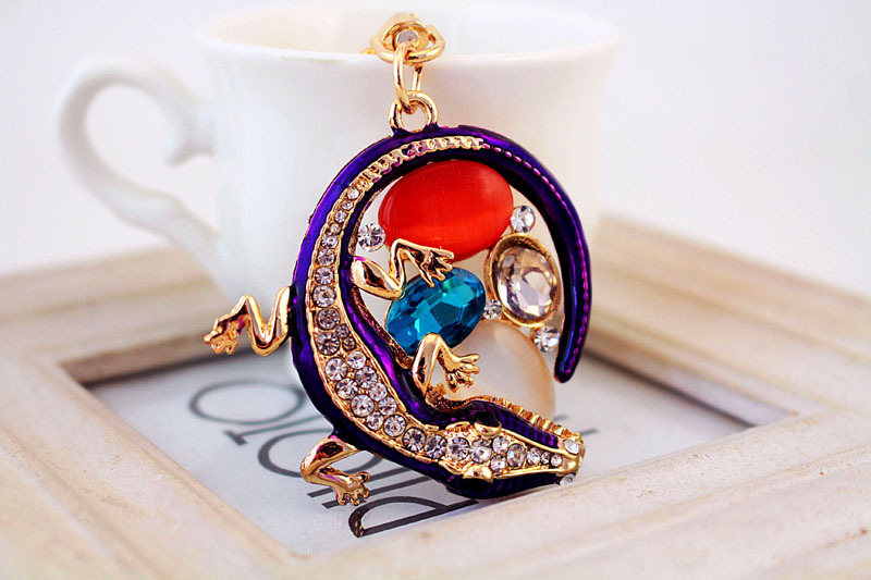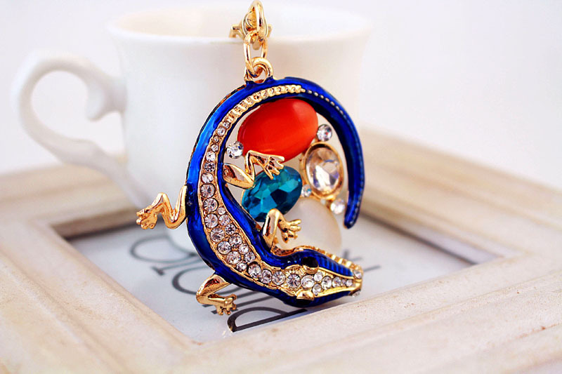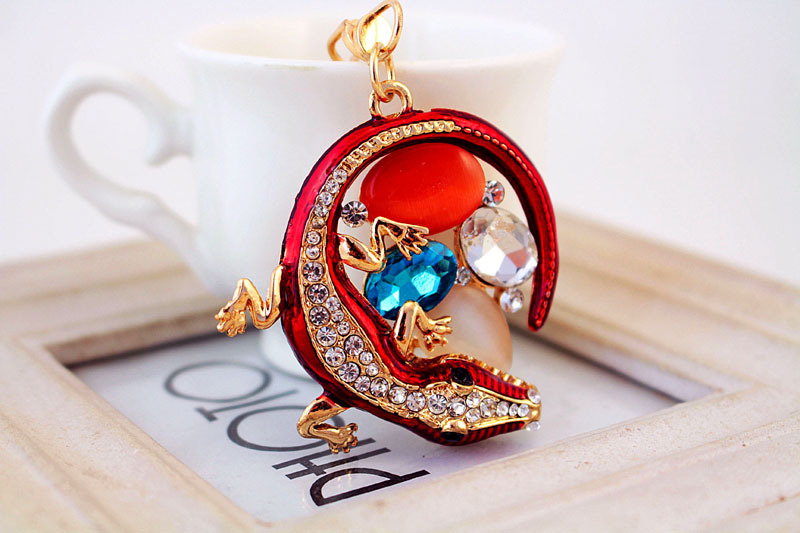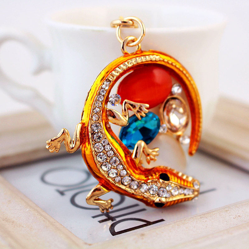 Gecko Lizard Animal Crystal Diamante Bag Charms Handbag Women Keyrings Pendant