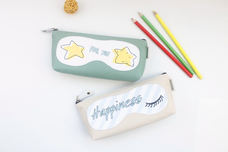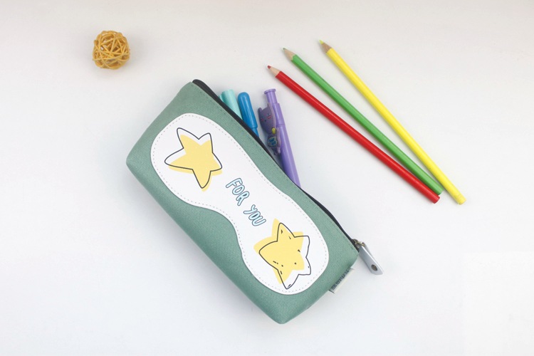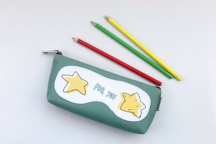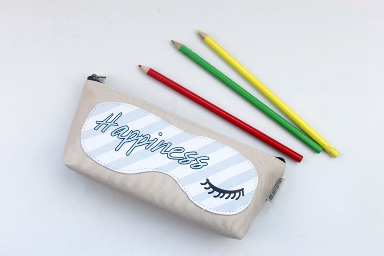 Girls Cute Happiness For You Canvas Pencil Case Stationery Cosmetic Make Up Bag Pen Storage Pouch