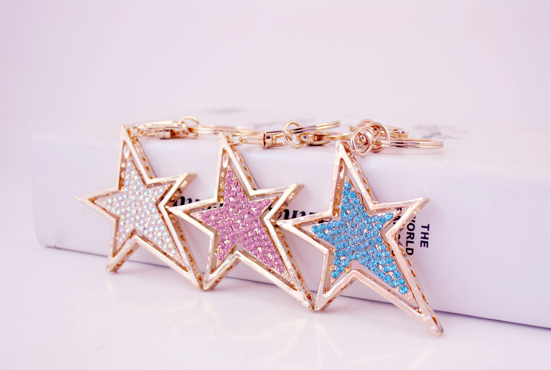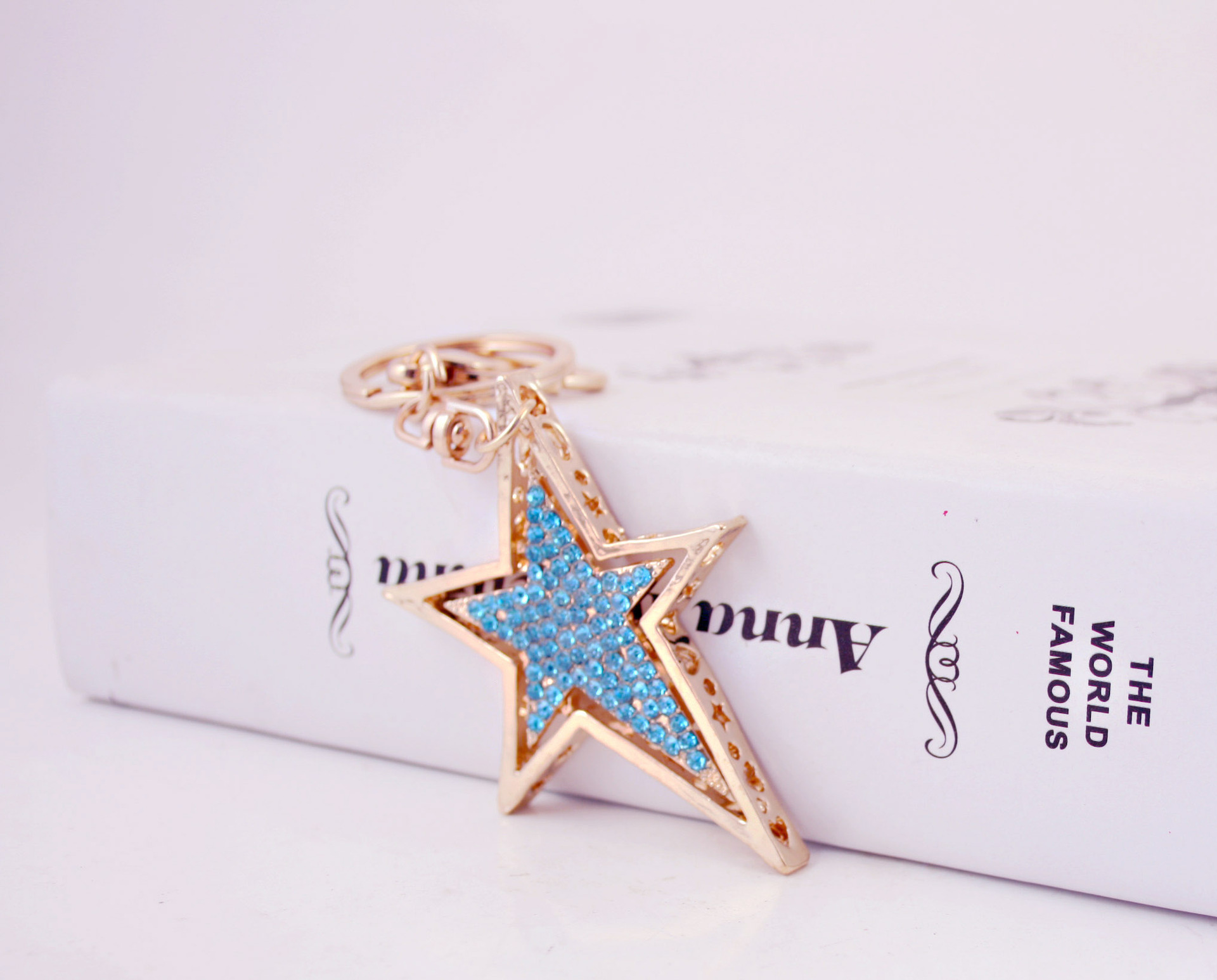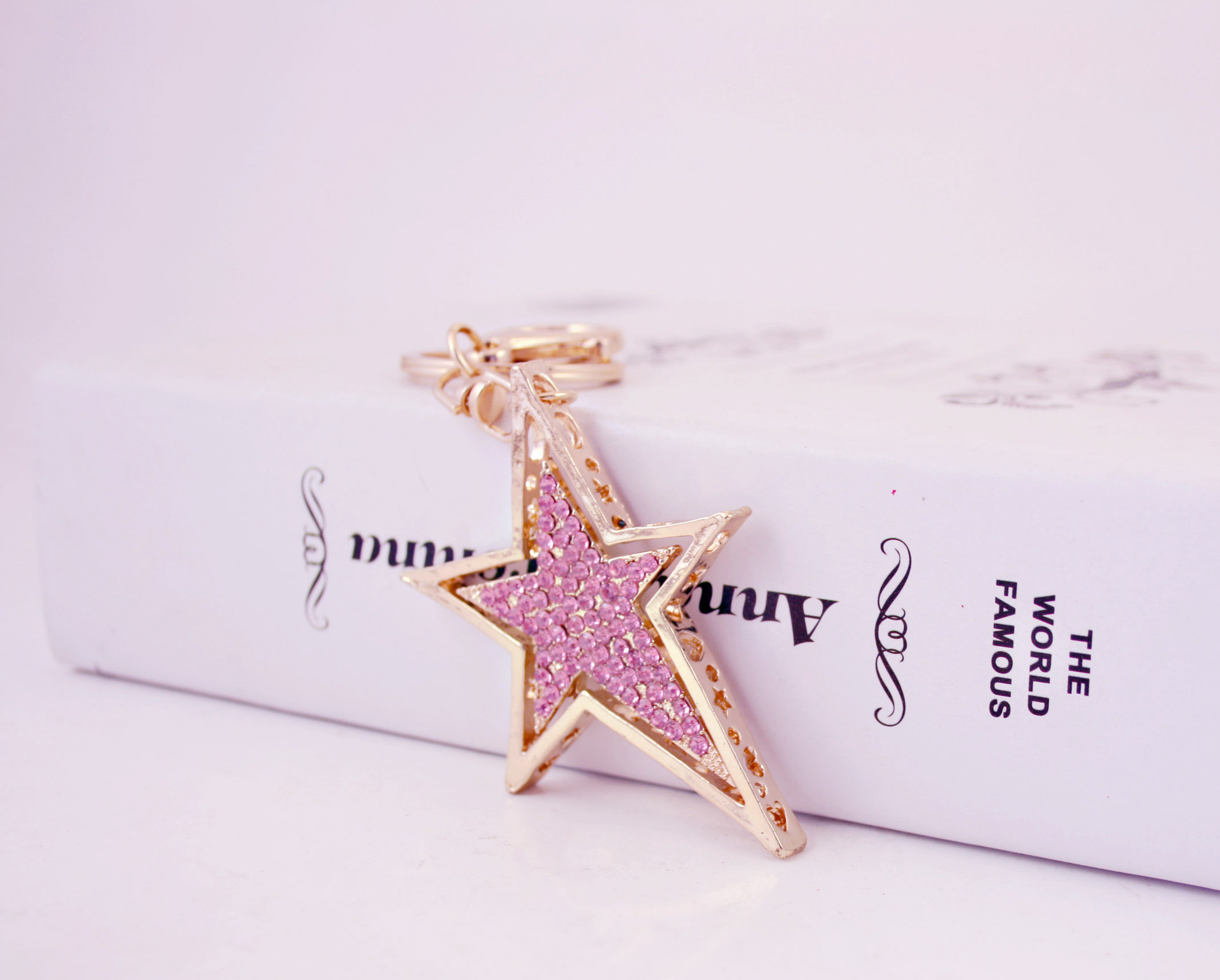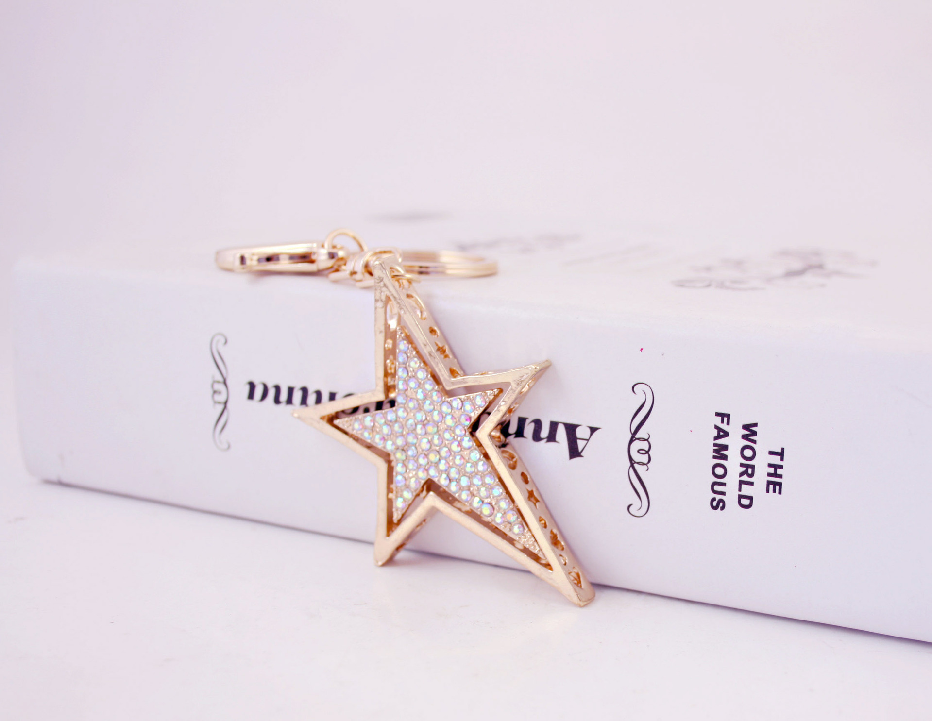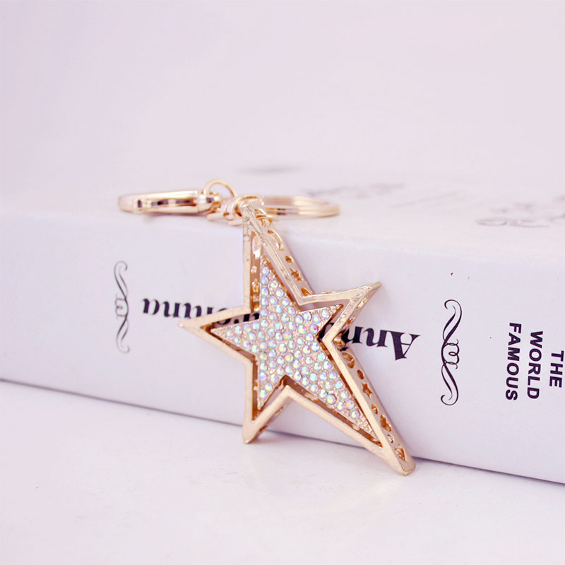 Gold Star Crystal Diamante Bag Charms Handbag Keyrings Pendant Key Chain