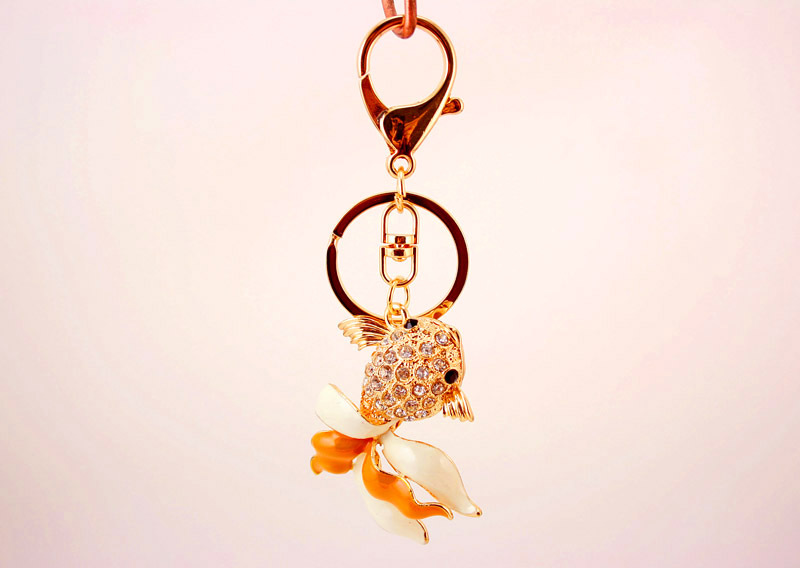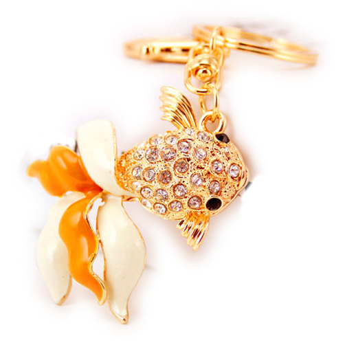 Details:Goldfish Fish Crystal Diamante Bag Charms Handbag Keyrings Pendant Key Chain