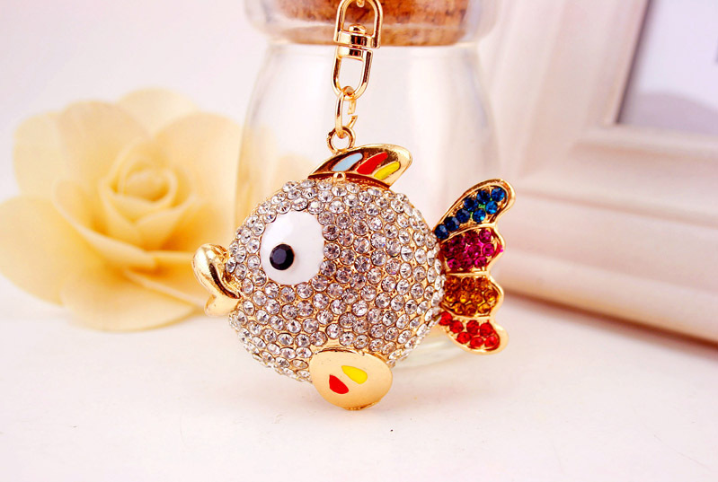 A very attractive design in colourful gold fish with sparkling crystal diamante rhinestones. This bag charm / handbag keyring is a very unique gift for your loved one on special occasions.