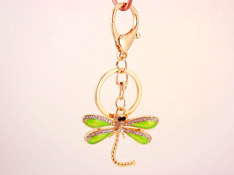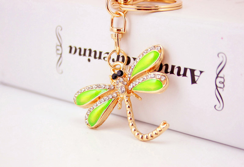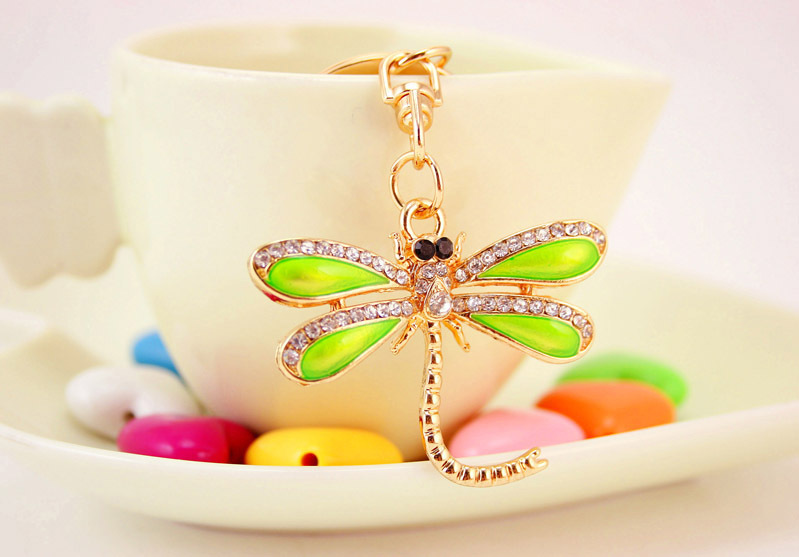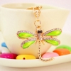 Green Dragonfly Animal Insect Crystal Diamante Bag Charms Handbag Keyring