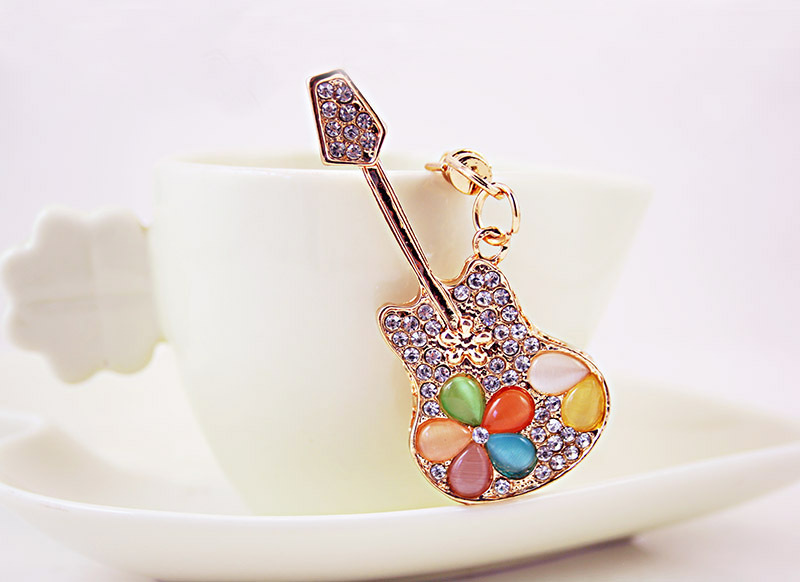 Details:Guitar Flowers Crystal Diamante Rhinestone Bag Charms Handbag Keyrings Pendant