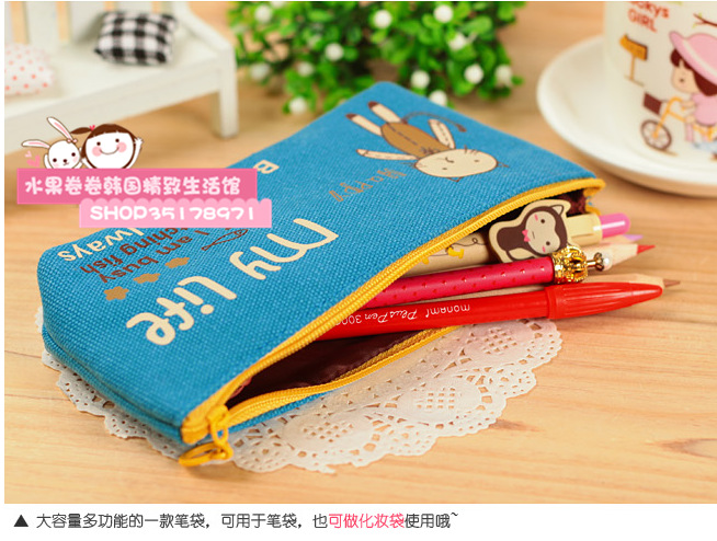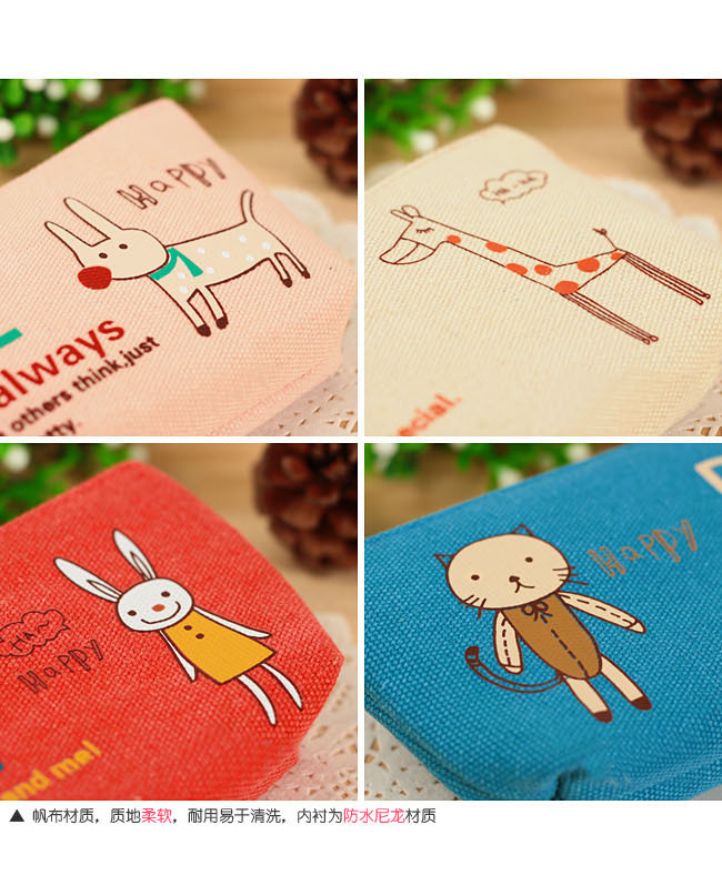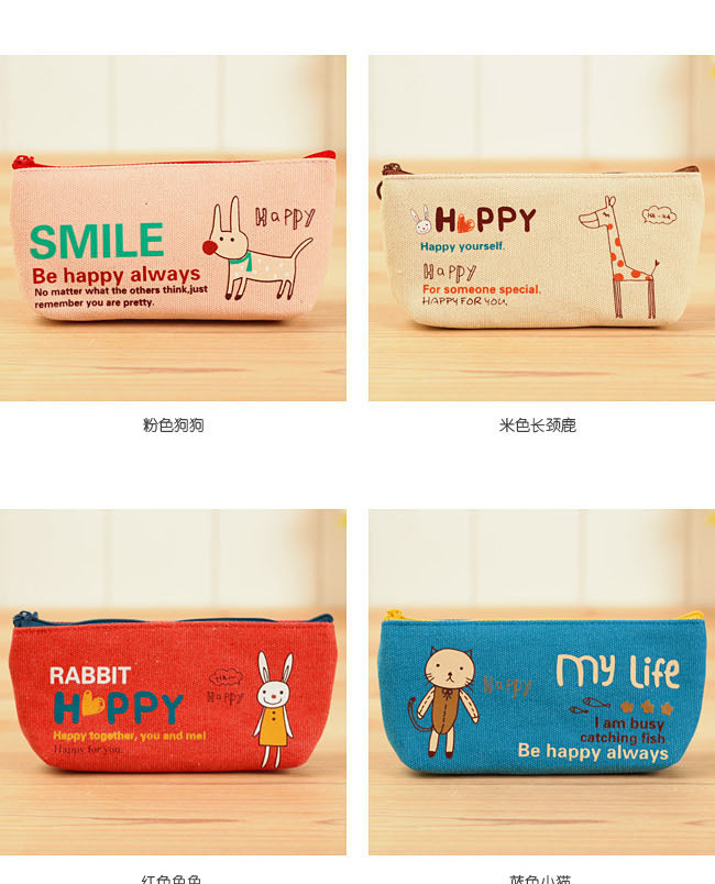 Happy Animals Cat Rabbit Dog Giraffe Canvas Pencil Case Coin Purse Makeup Bags