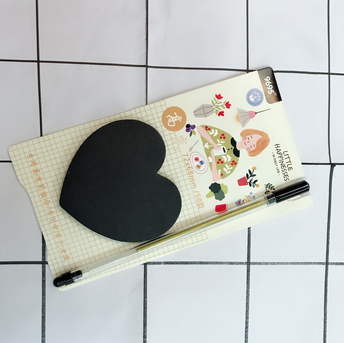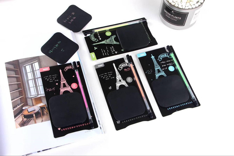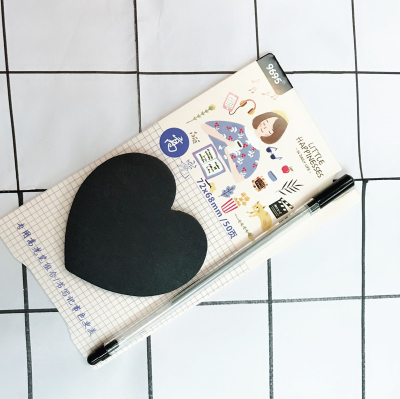 Heart Square Shape Black Sticky Notes With Glitter Pens Cute Sticky Note Pad