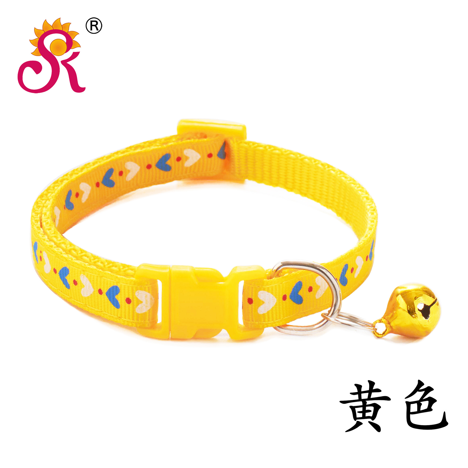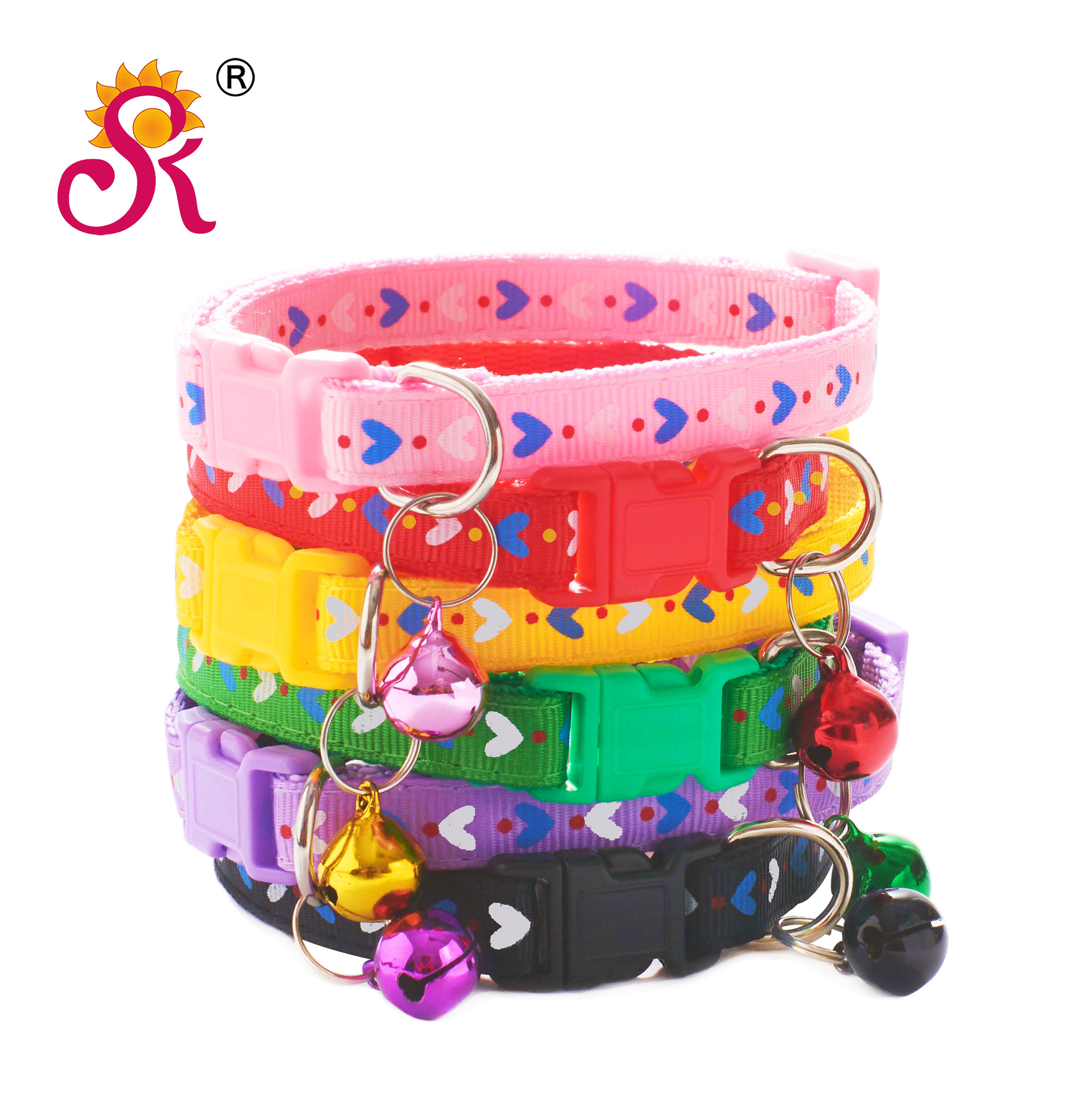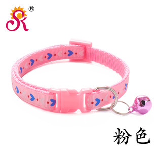 Hearts Patterned Adjustable Cat Collar Kitten Puppy Dog Pet Bell Snap Buckle