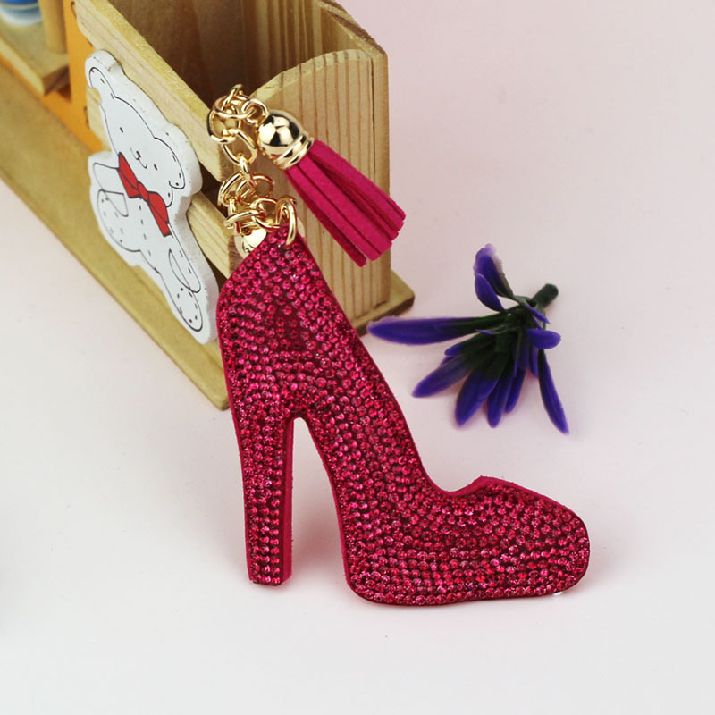High Heel Shoe Shaped Crystal Diamante Leather Bag Charms Lady Handbag Keyrings