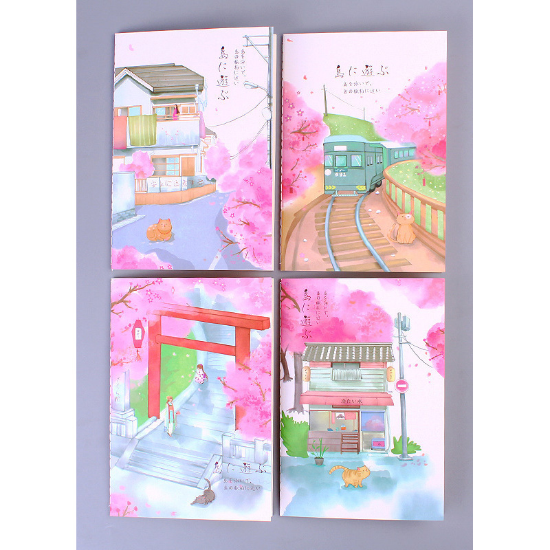 Japanese Style Pink Cherry Blossom Flowers Mount Fuji A5 Cute Floral Notebooks
