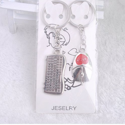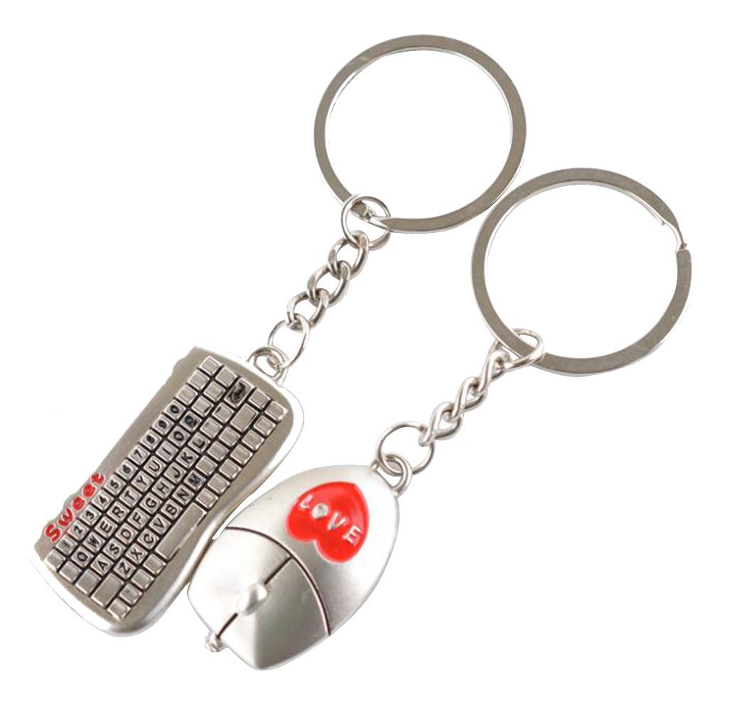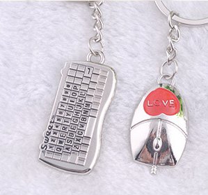 Keyboard Mouse Love Heart Silver Metal Couple Keyrings Lovers Puzzle Key Chains