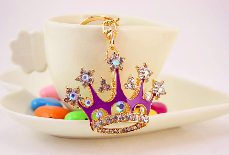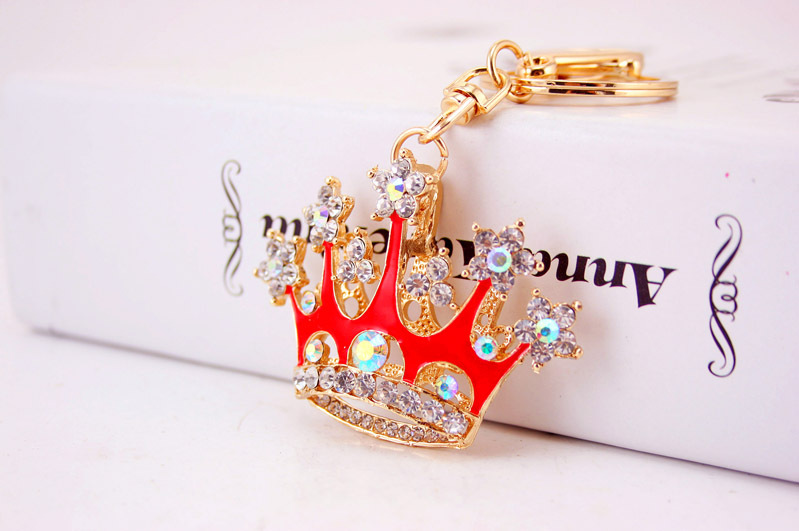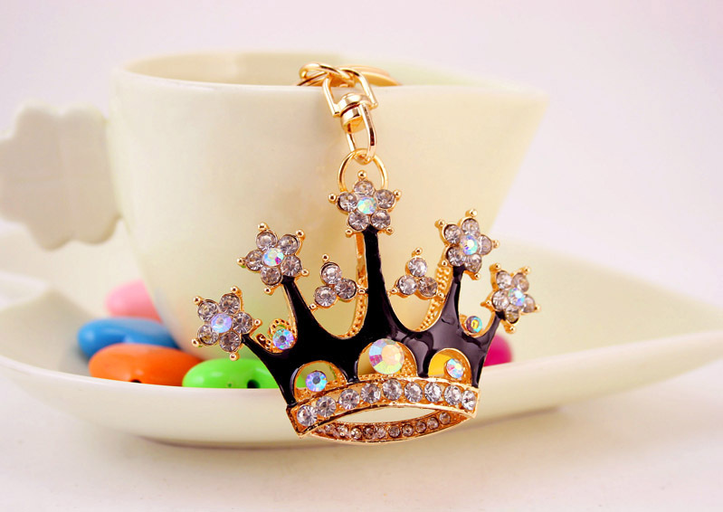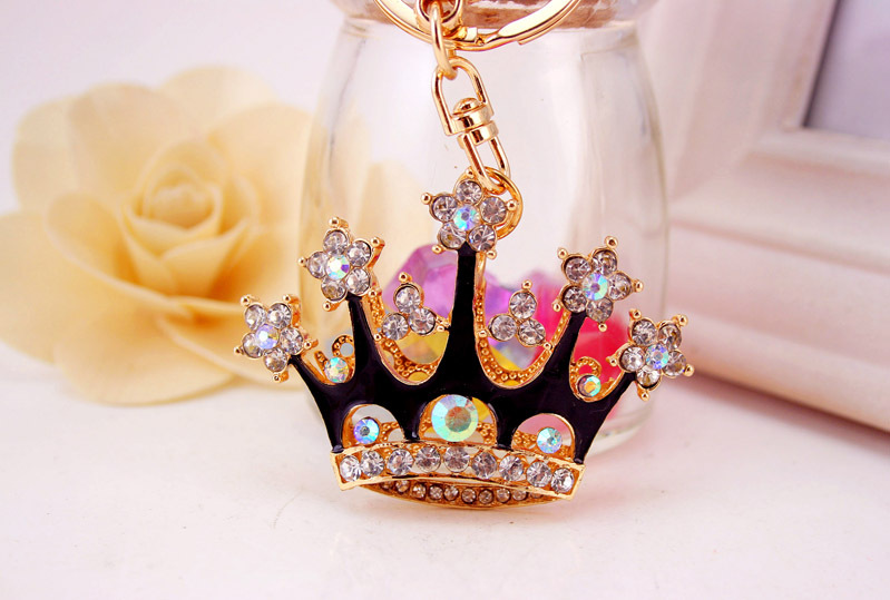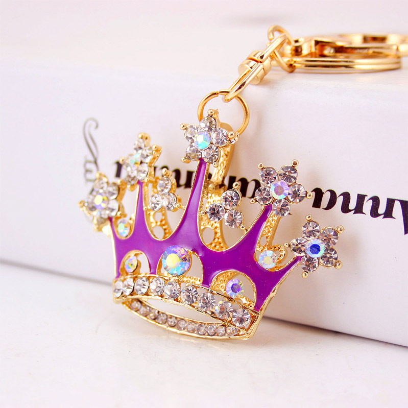 King Queen Royal Crown Crystal Diamante Bag Charms Handbag Keyrings Pendant