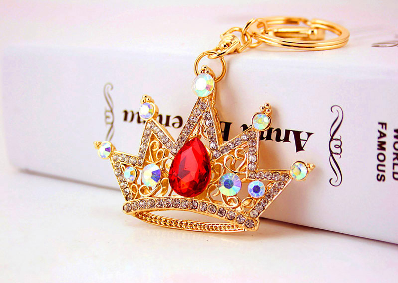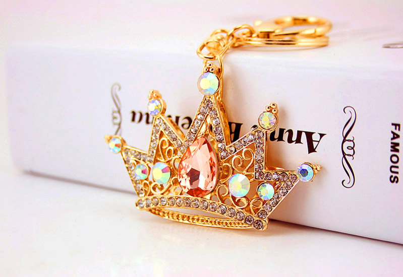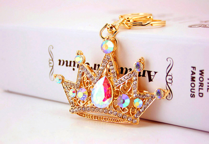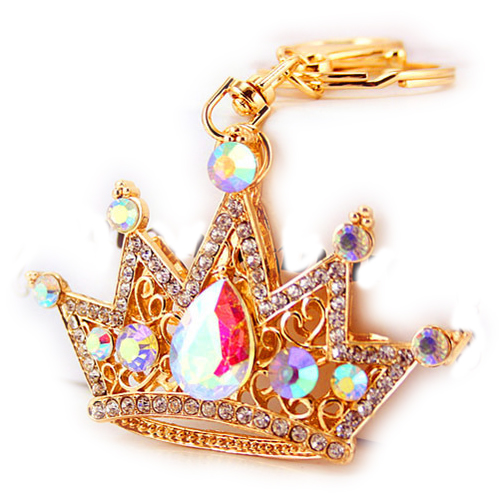 King Queen Royal Crown Crystal Diamante Bag Charms Handbag Keyrings Pendant