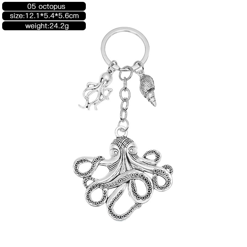 Large Antiqued Silver Octopus Keyring Squid Kraken Sea Monster Animal Vintage