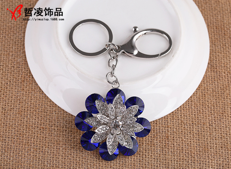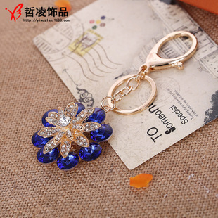 Large Daisy Flower Crystal Diamante Rhinestone Bag Charms Floral Handbag Keyrings Pendant Key Chain