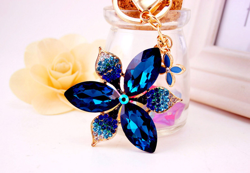 Large Lily Flower Crystal Diamante Rhinestone Bag Charms Handbag Keyring Pendant
