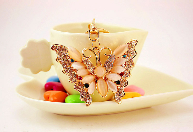 Details:Large White Butterfly Crystal Diamante Rhinestone Bag Charms Handbag Keyring