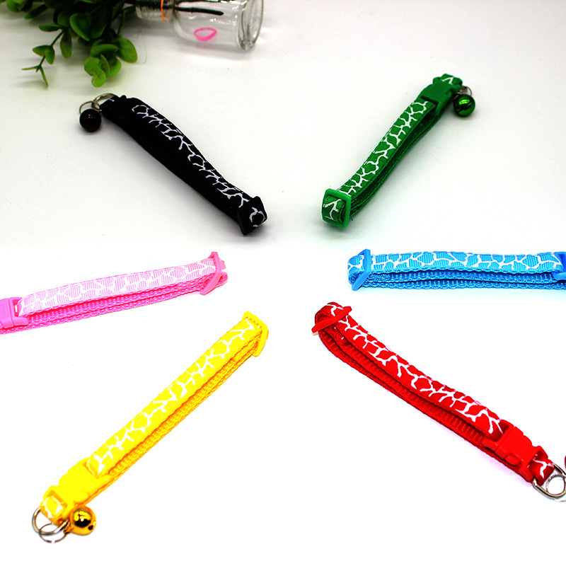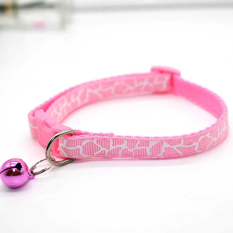 Leopard Skin Patterned Adjustable Kitten Cat Collar With Bell And Snap Buckle