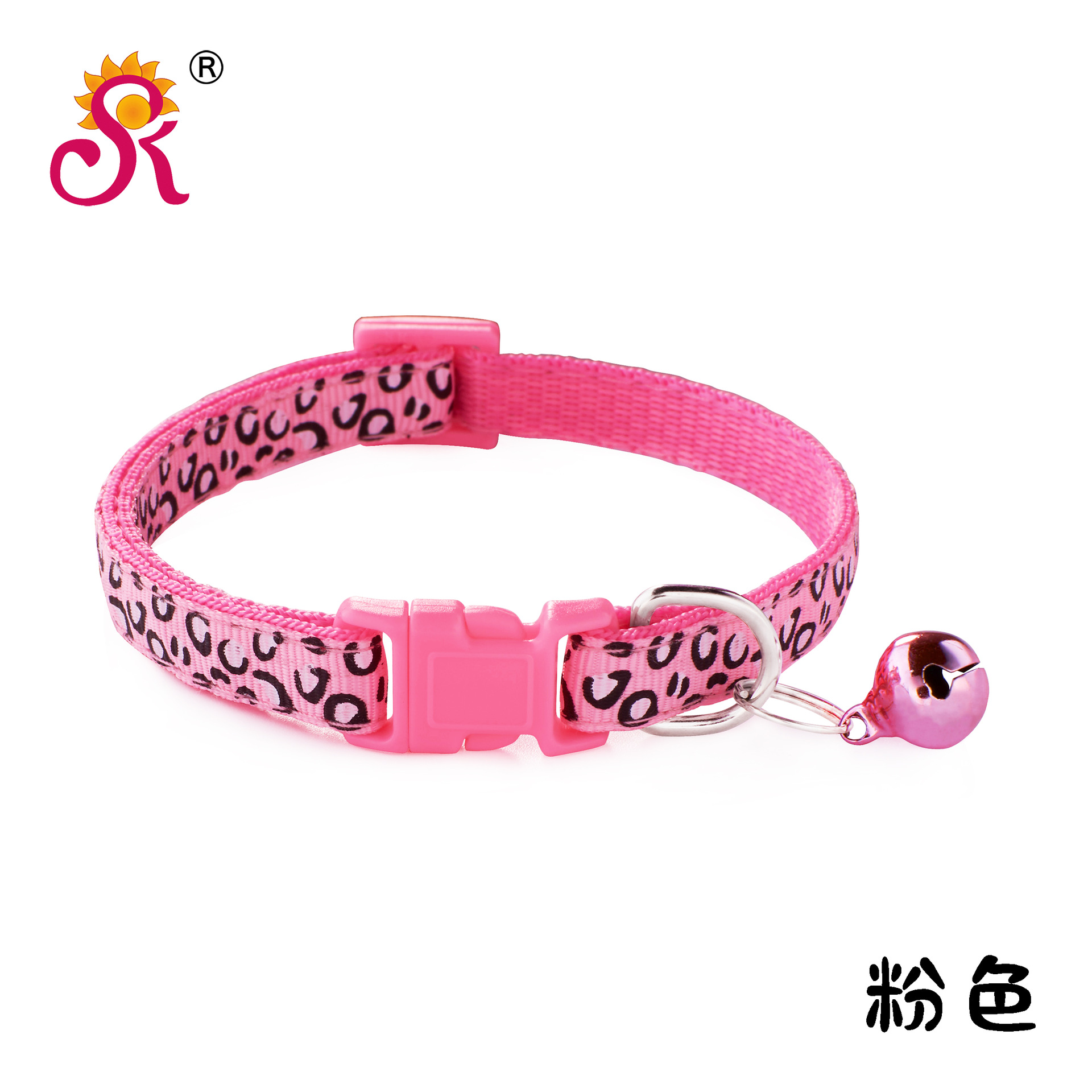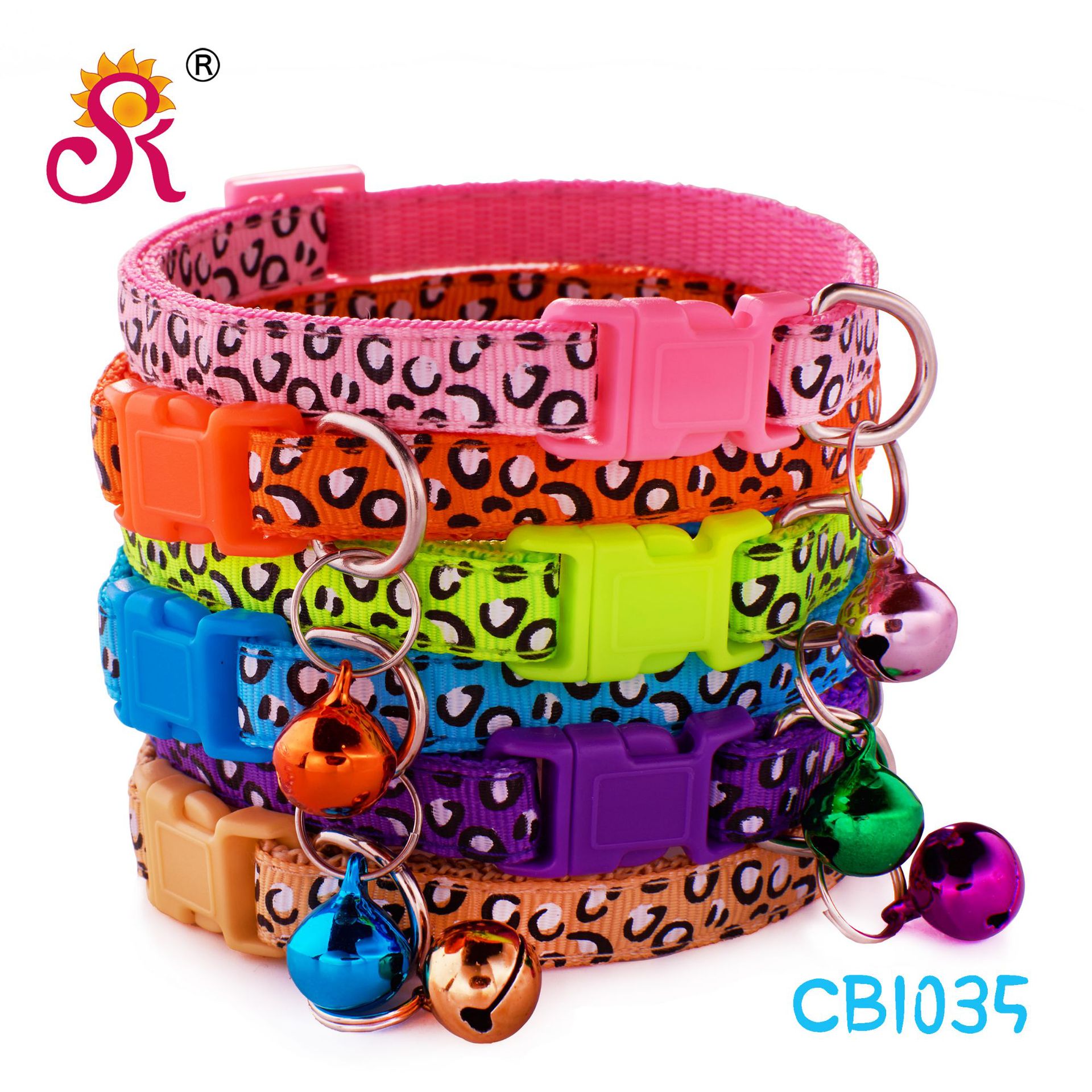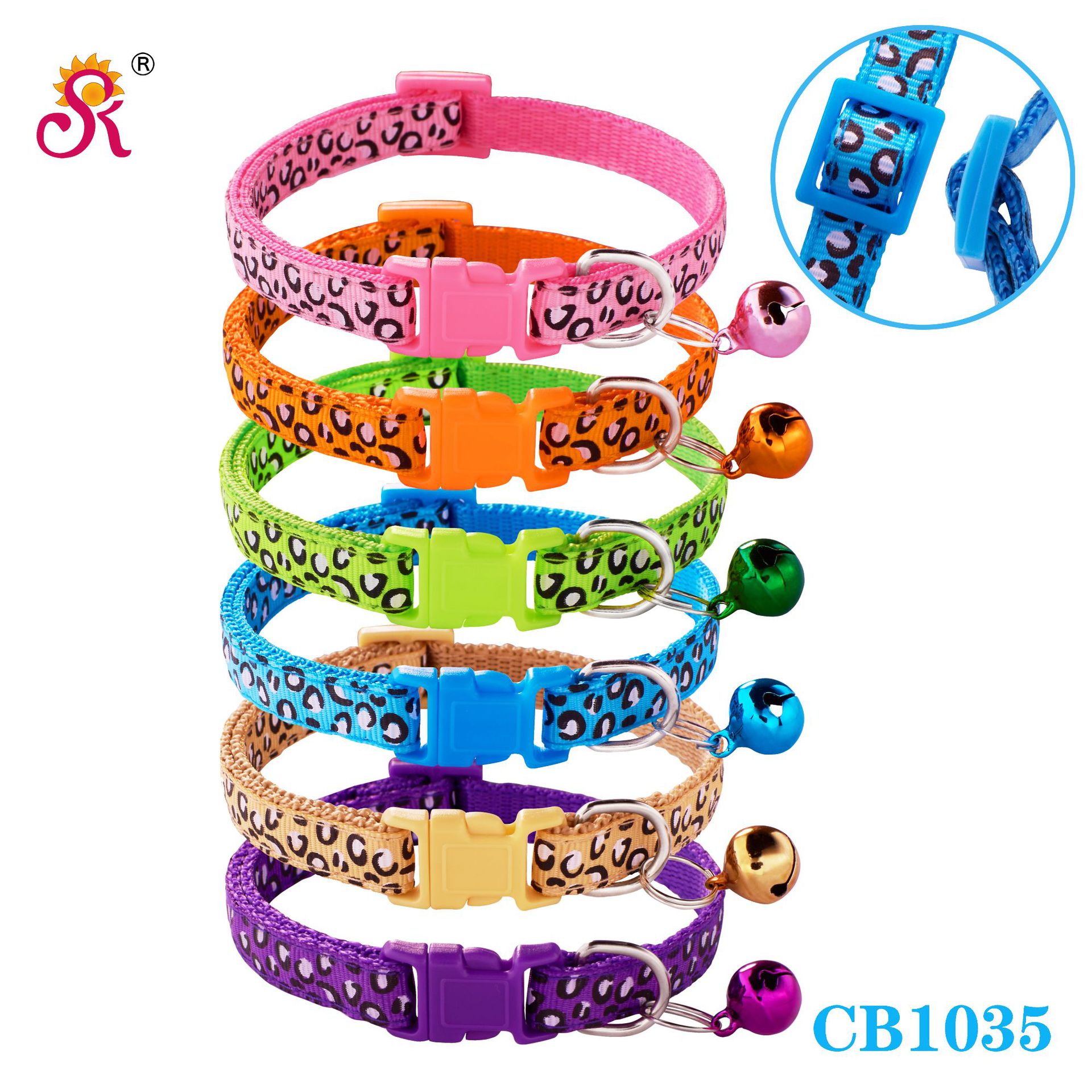 Leopard Skin Patterned Adjustable Kitten Cat Collar With Bell And Snap Buckle