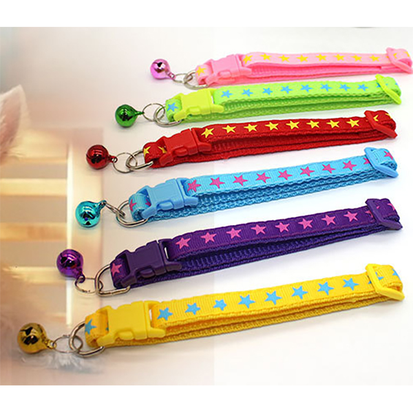 Little Stars Adjustable Kitten Cat Collar With Bell And Snap Buckle