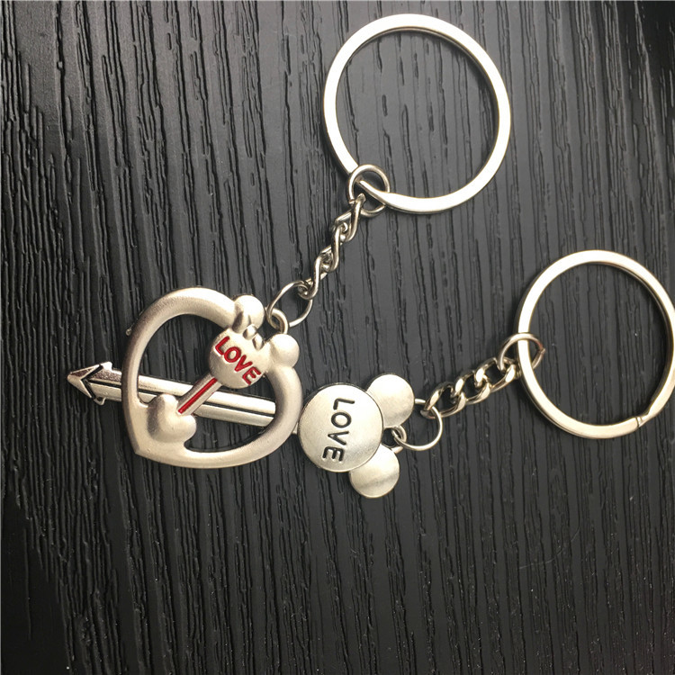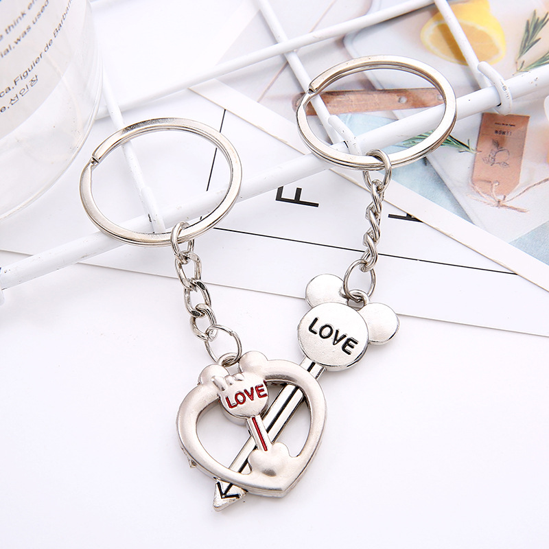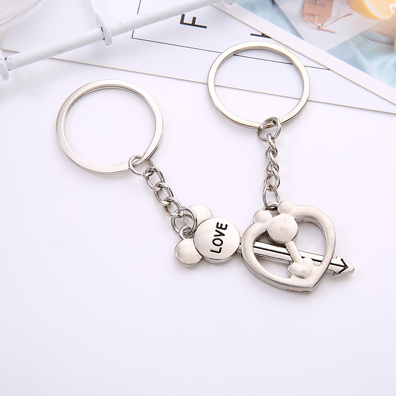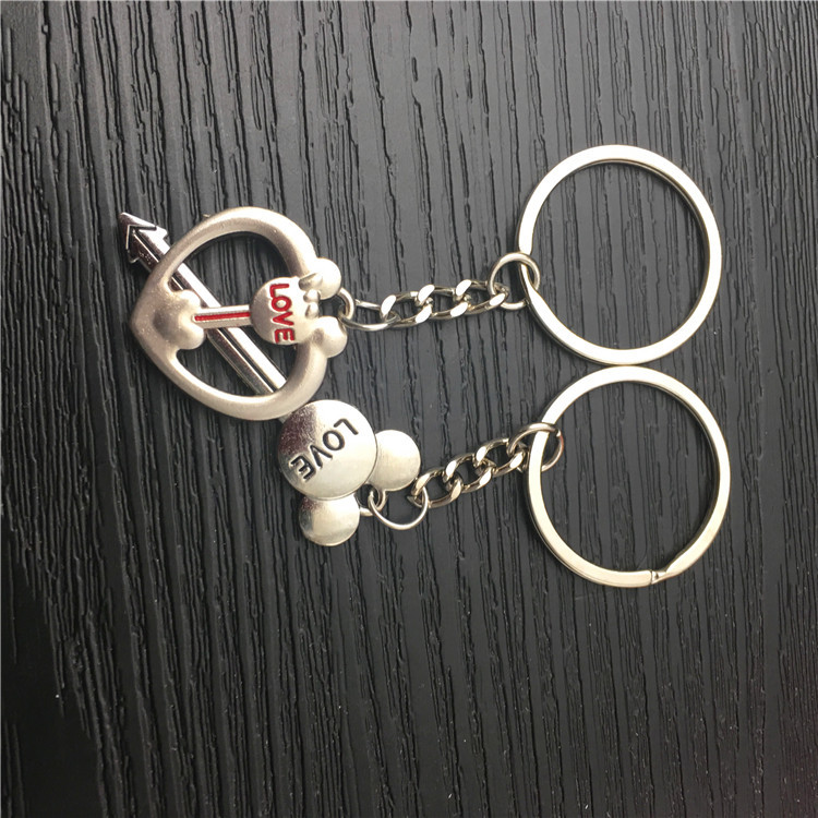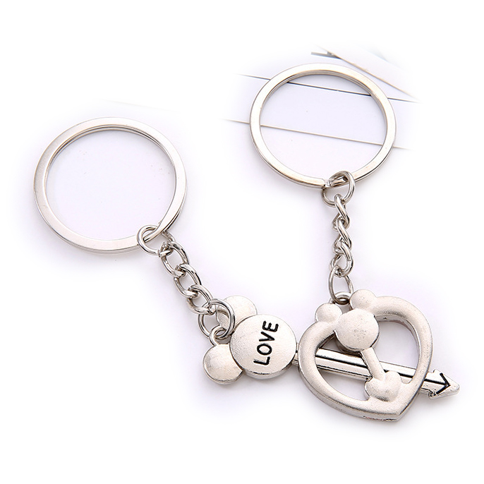 Love Heart Cupid Arrow Silver Couple Keyrings Lovers Puzzle Metal Keyring Set