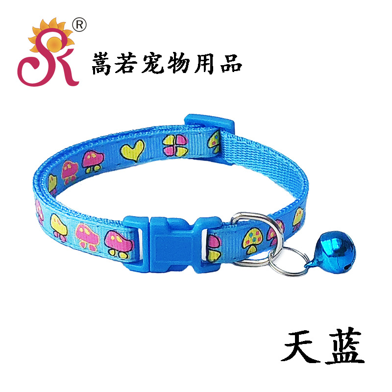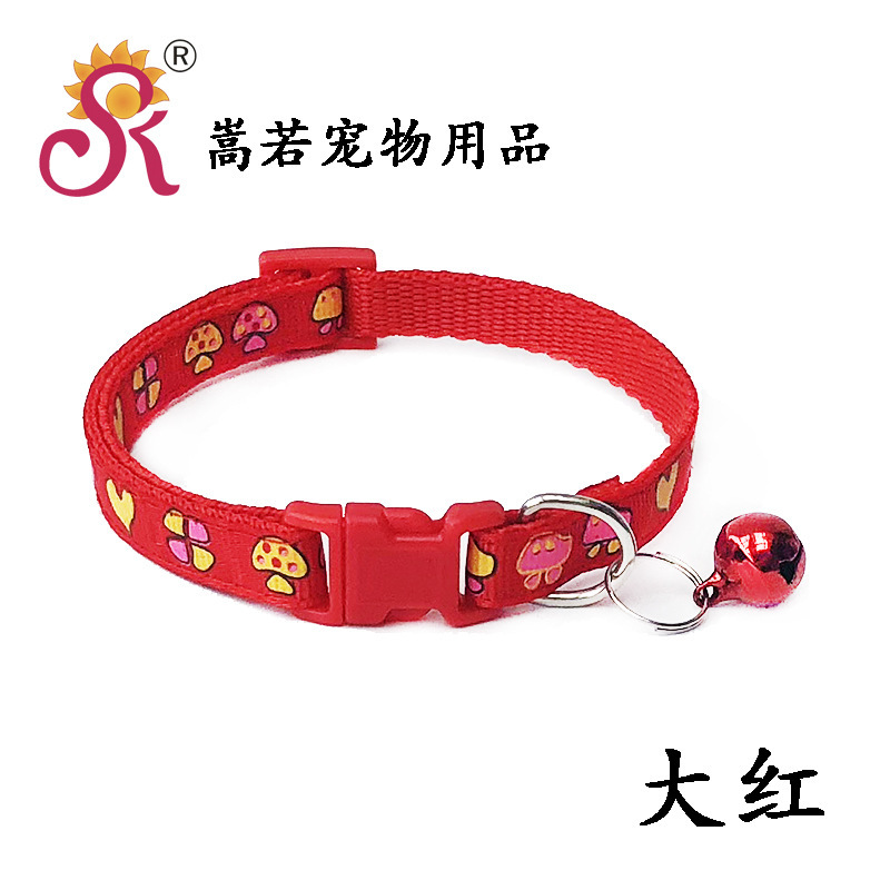 Love Hearts Flowers Mushroom Adjustable Kitten Cat Collar With Bell Snap Buckle