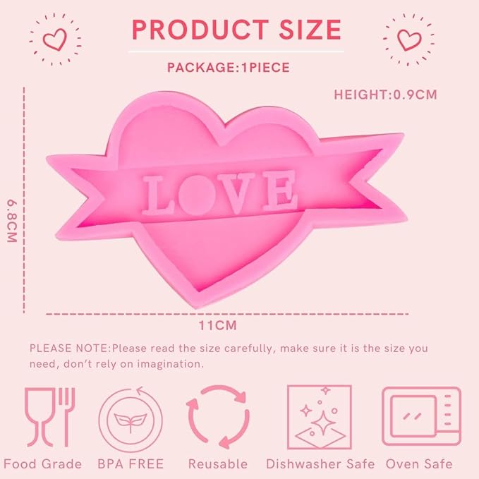 Details:Love Letters Heart Pink Silicone Mould Chocolate Sugarcraft Mold Cake Topper