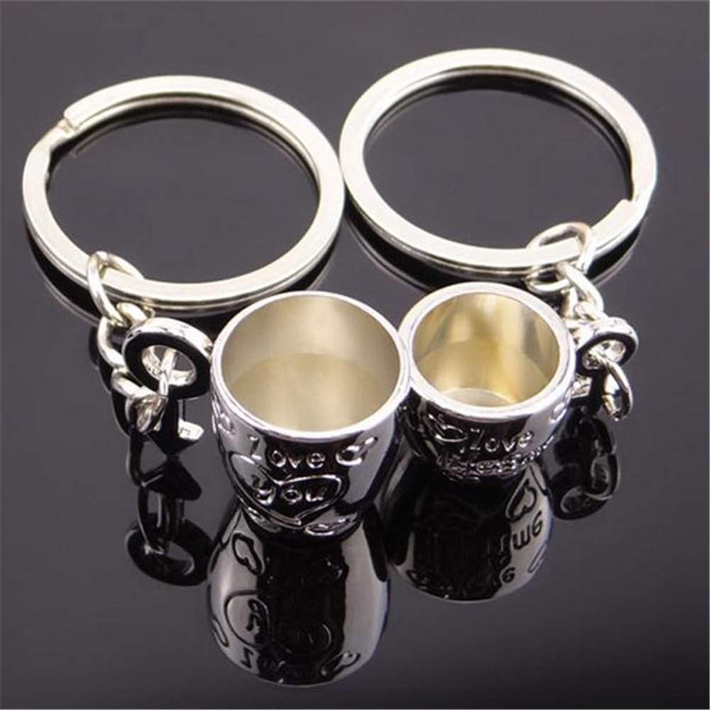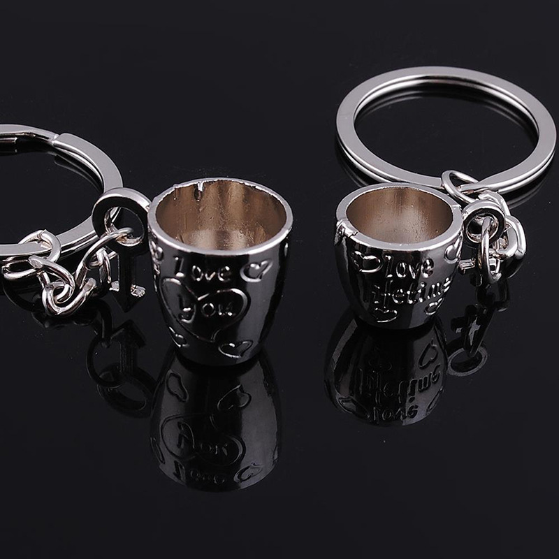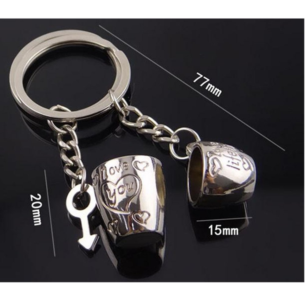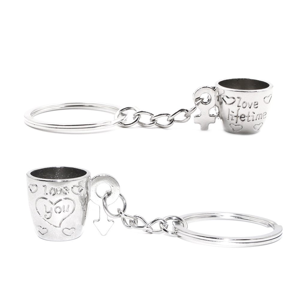 Love You Lovers Mugs Cups Mars Venus Sex Symbol Silver Metal Couple Keyrings Set