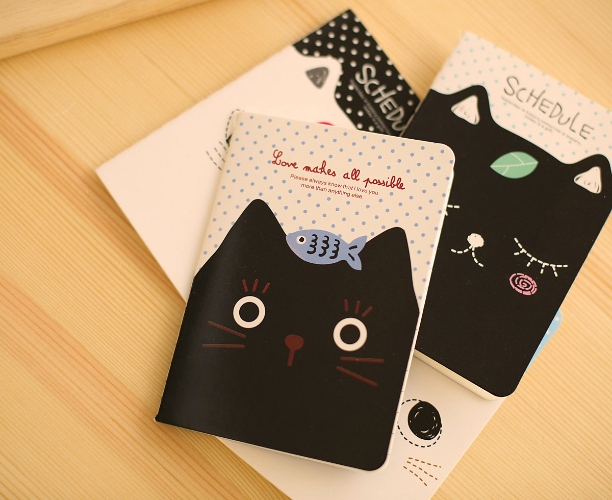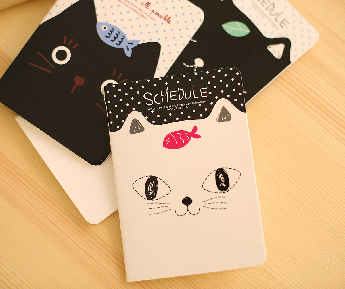 Lovely Black White Kitten Cats Mini Cute Notebooks Small Notepads Lined Notes Pad Pocket Memo Pads