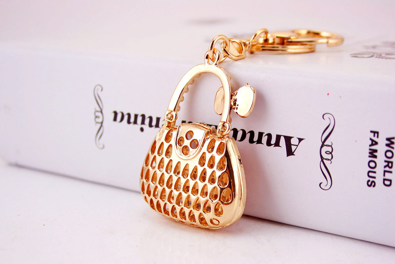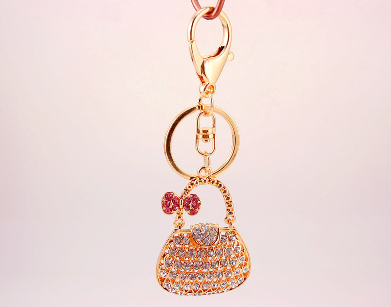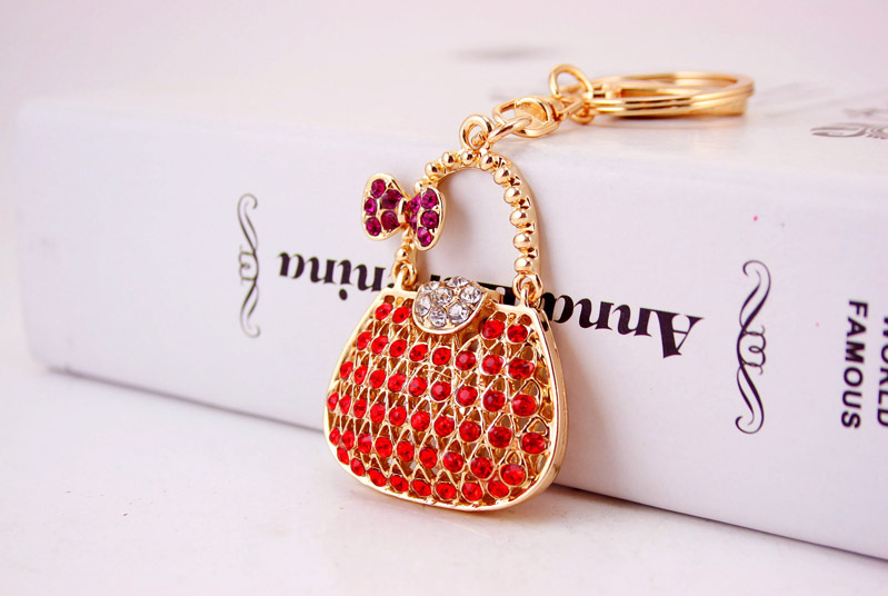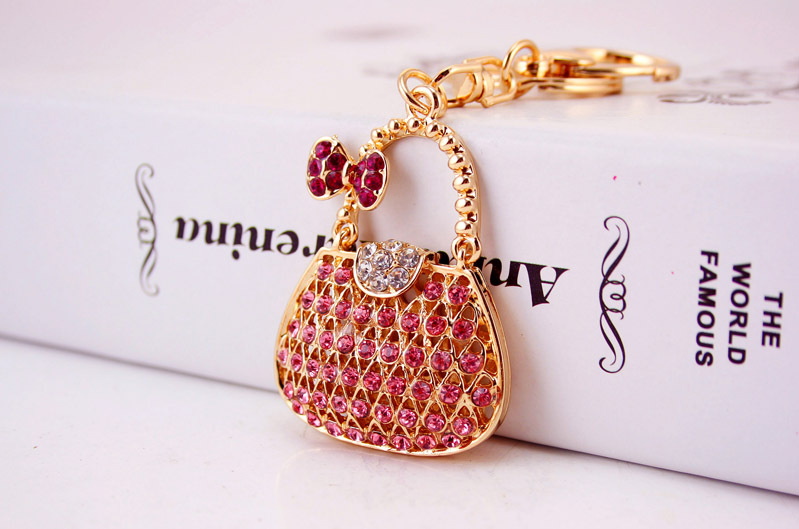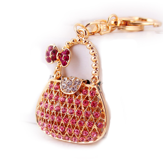 Details:Lovely Handbag Shape Bow Knot Crystal Diamante Bag Charm Keyring Pendant