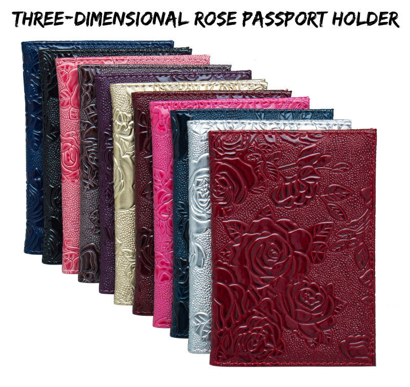 Luxury Elegant Rose Flowers Patterned PU leather passport cover available in different colours.