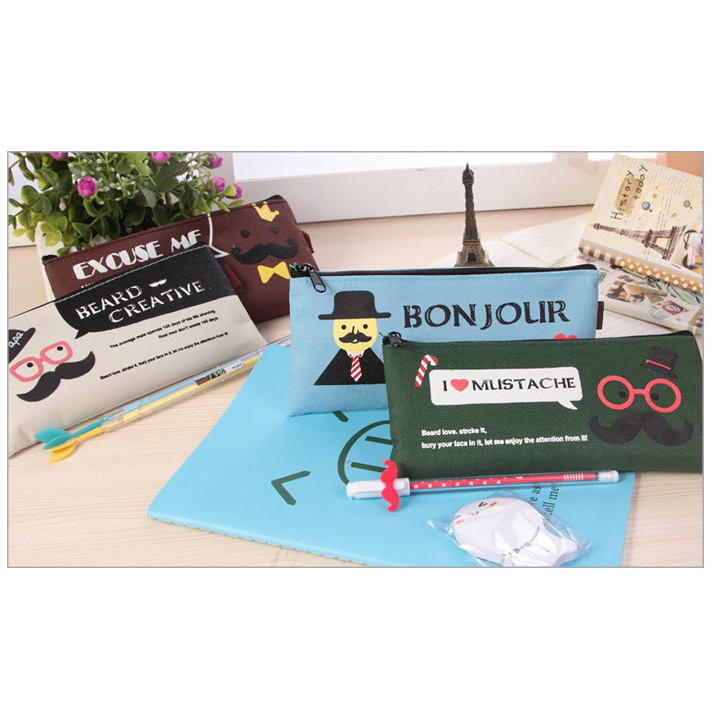 Mr Mustache Canvas Cute Pencil Cases Cosmetics Make Up Bags Pen Pouches