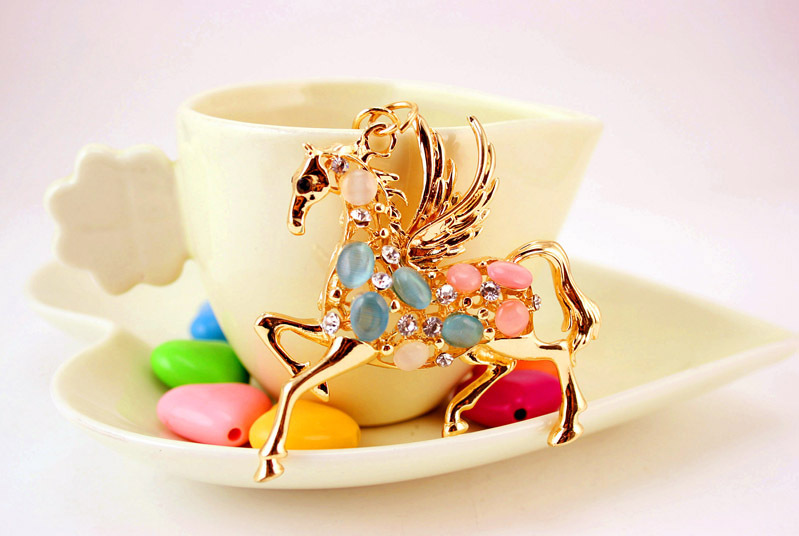 Pegasus Horse Animals Shaped Crystal Diamante Rhinestone Bag Charms Handbag Keyrings Pendant