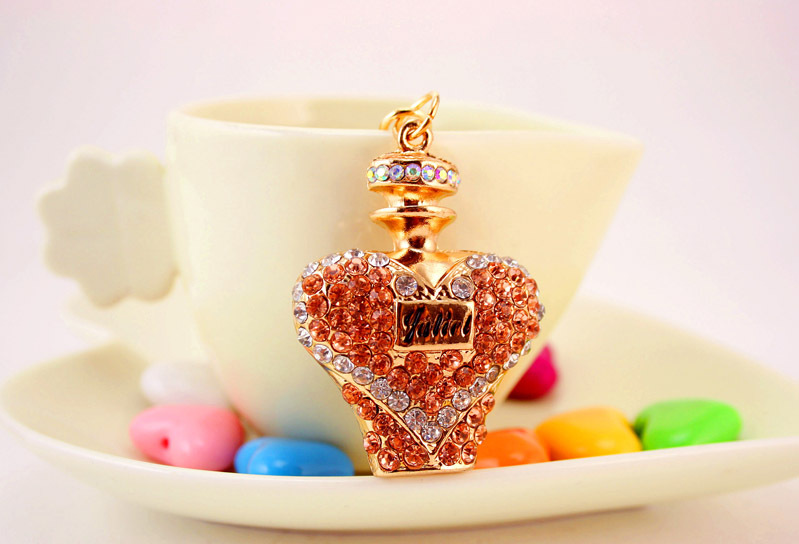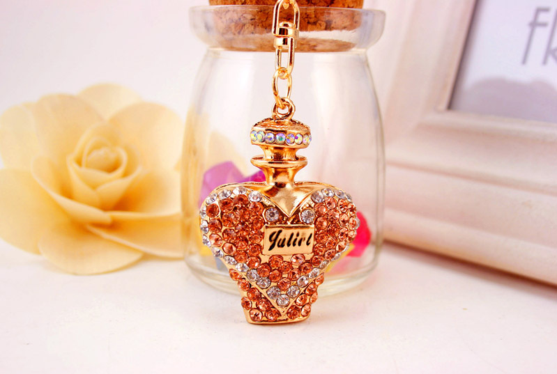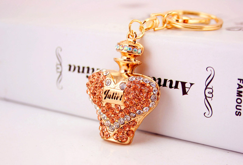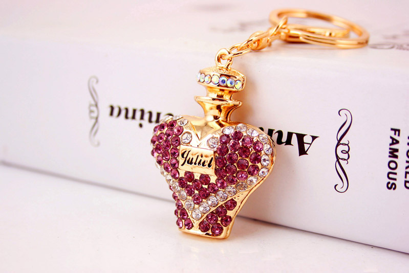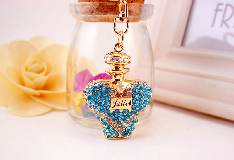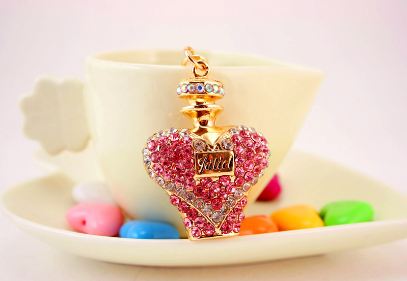 Pink Blue Purple Orange Perfume Bottle Shaped Crystal Diamante Rhinestone Bag Charms Handbag Keyring