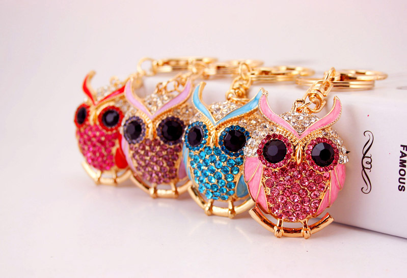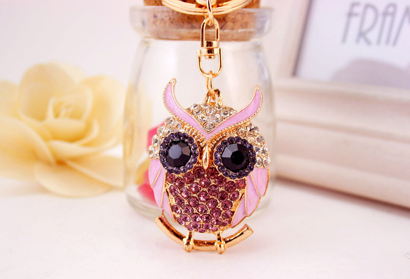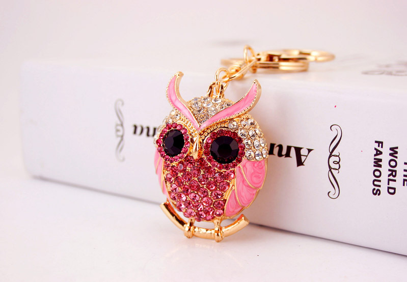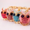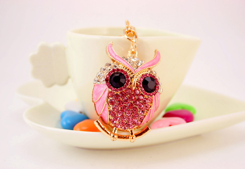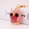 Pink Owl Birds Shaped Crystal Diamante Rhinestone Bag Charms Handbag Keyrings Pendant Key Chain