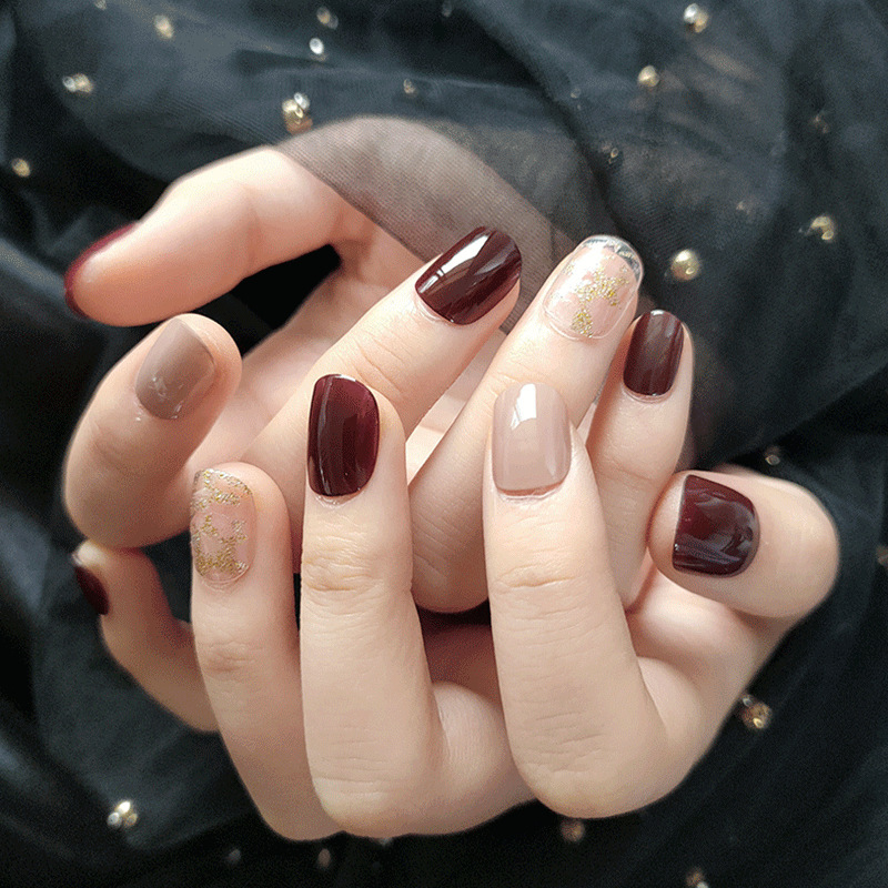 Pure Color False Nail Art Tips Full Cover Fake Nails With Glue