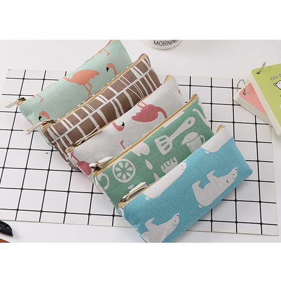 Retro Vintage Style Animals Teatime Patterned Cute Canvas Pencil Cases Pen Pouch
