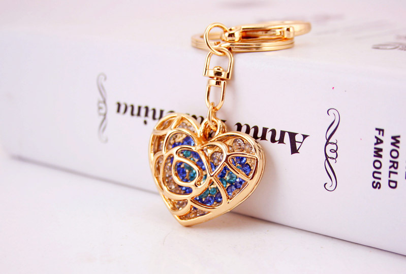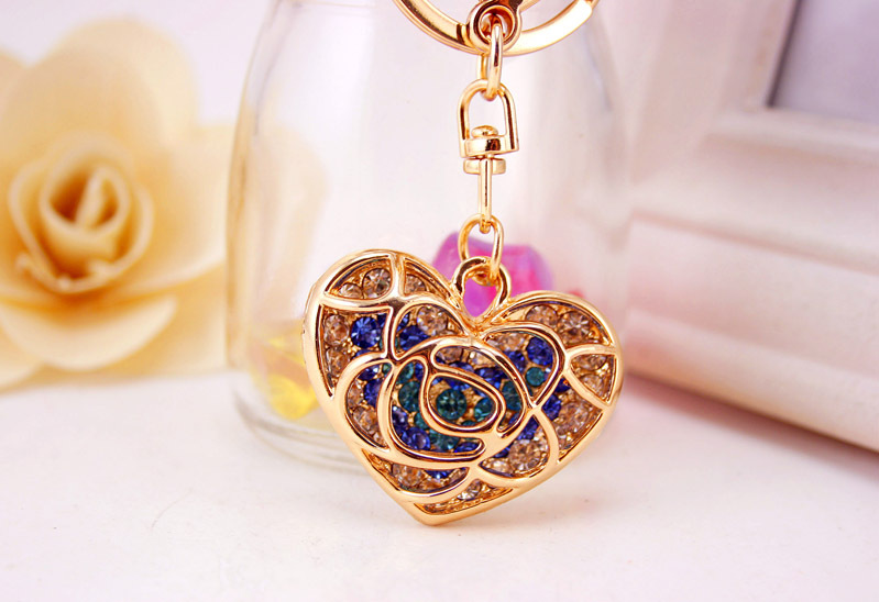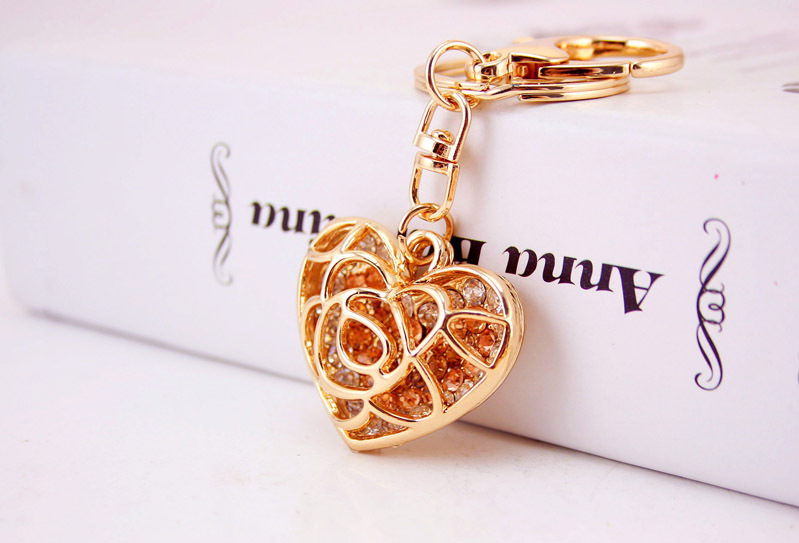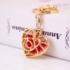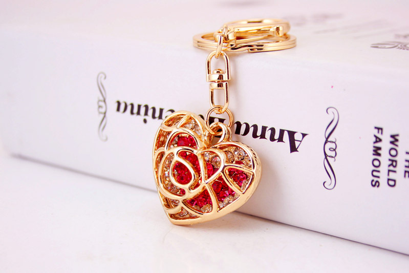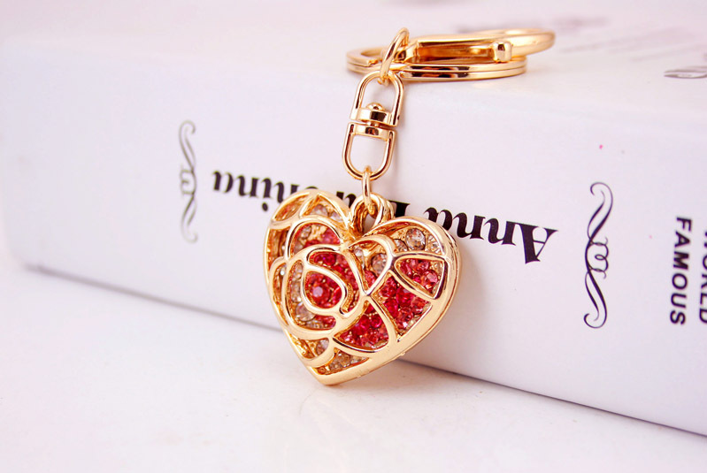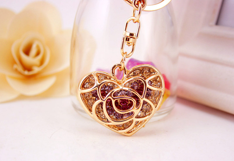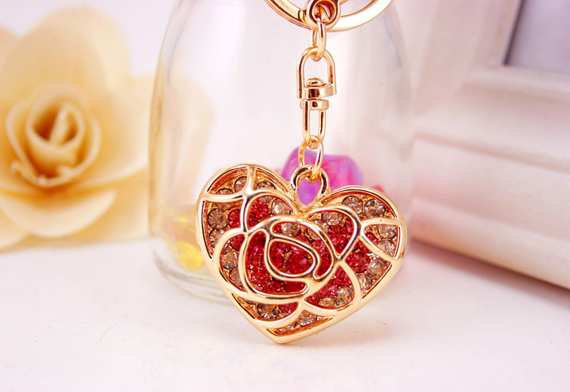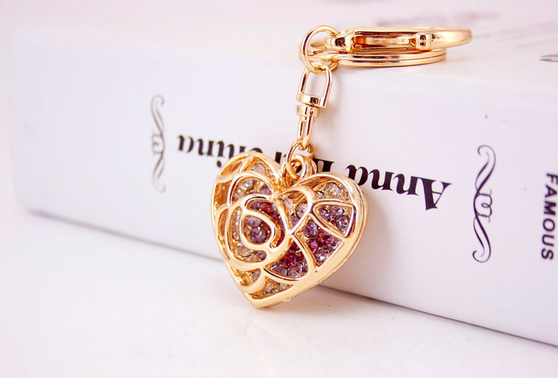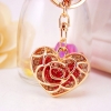 A very unique design of rose love heart shaped handbag charm with key chain.