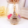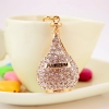 Sparkling Crystal Diamante Gold Perfume Bottle Handbag Charm Bag Pendant Keyring