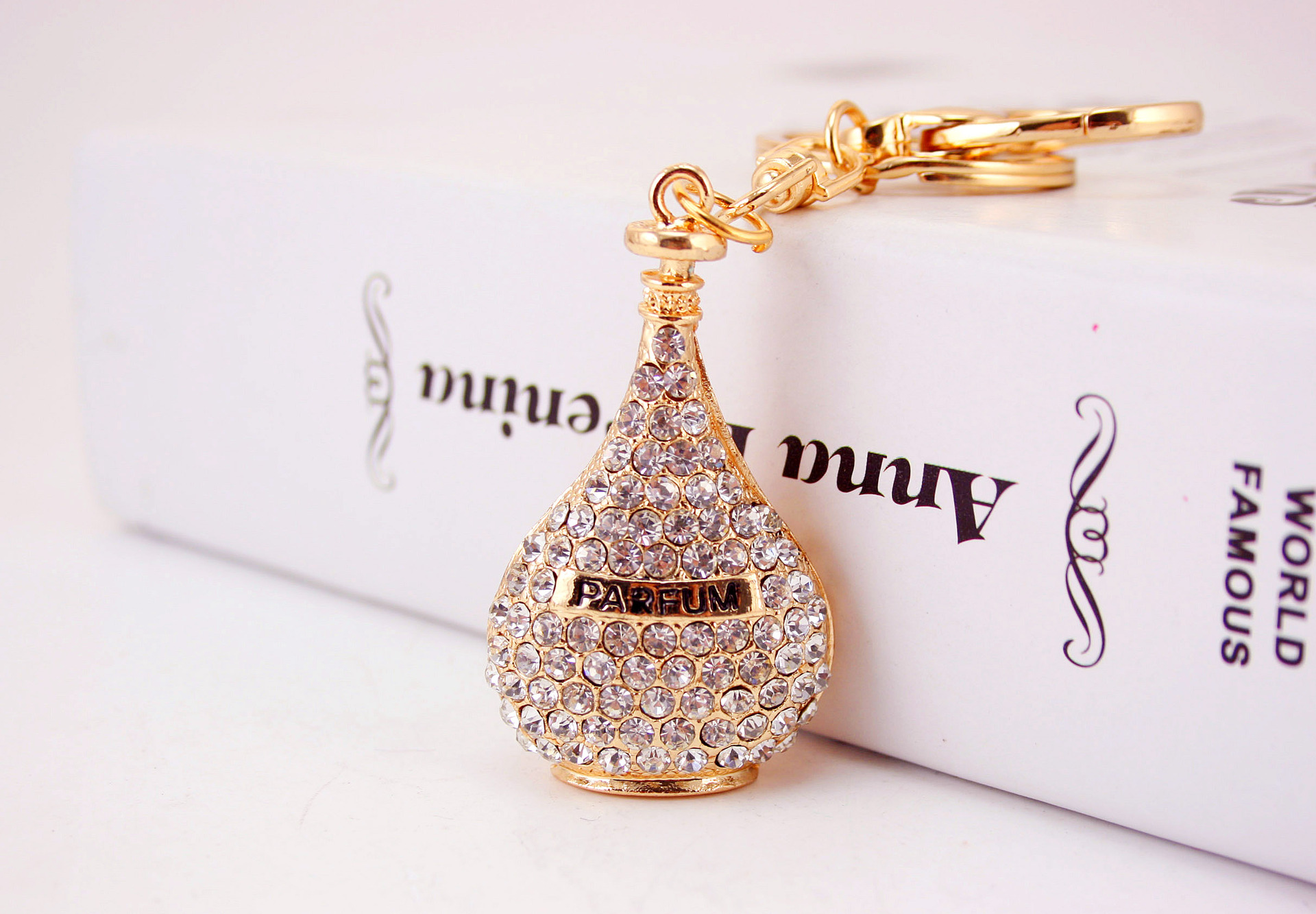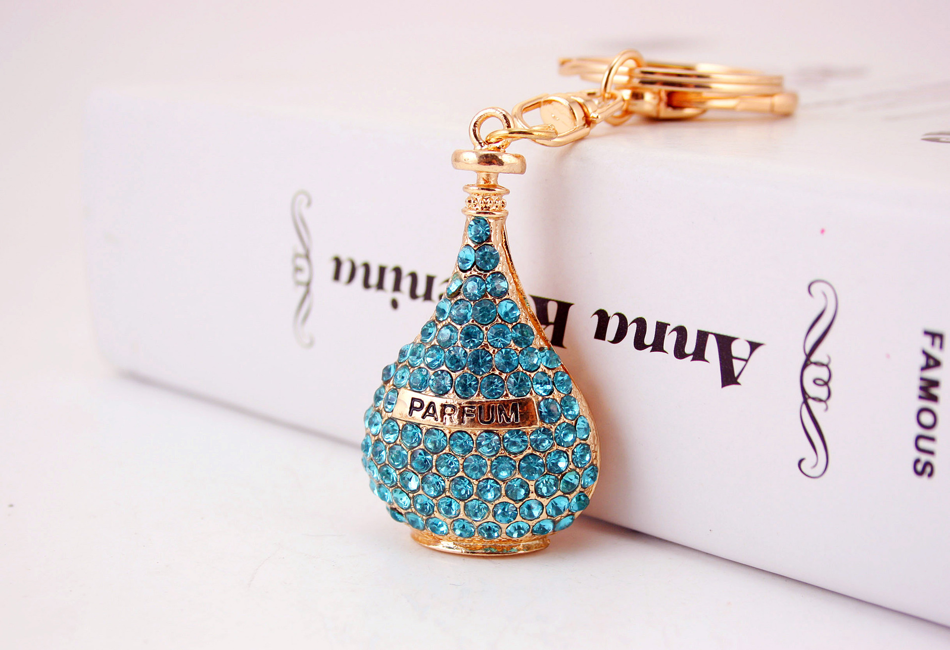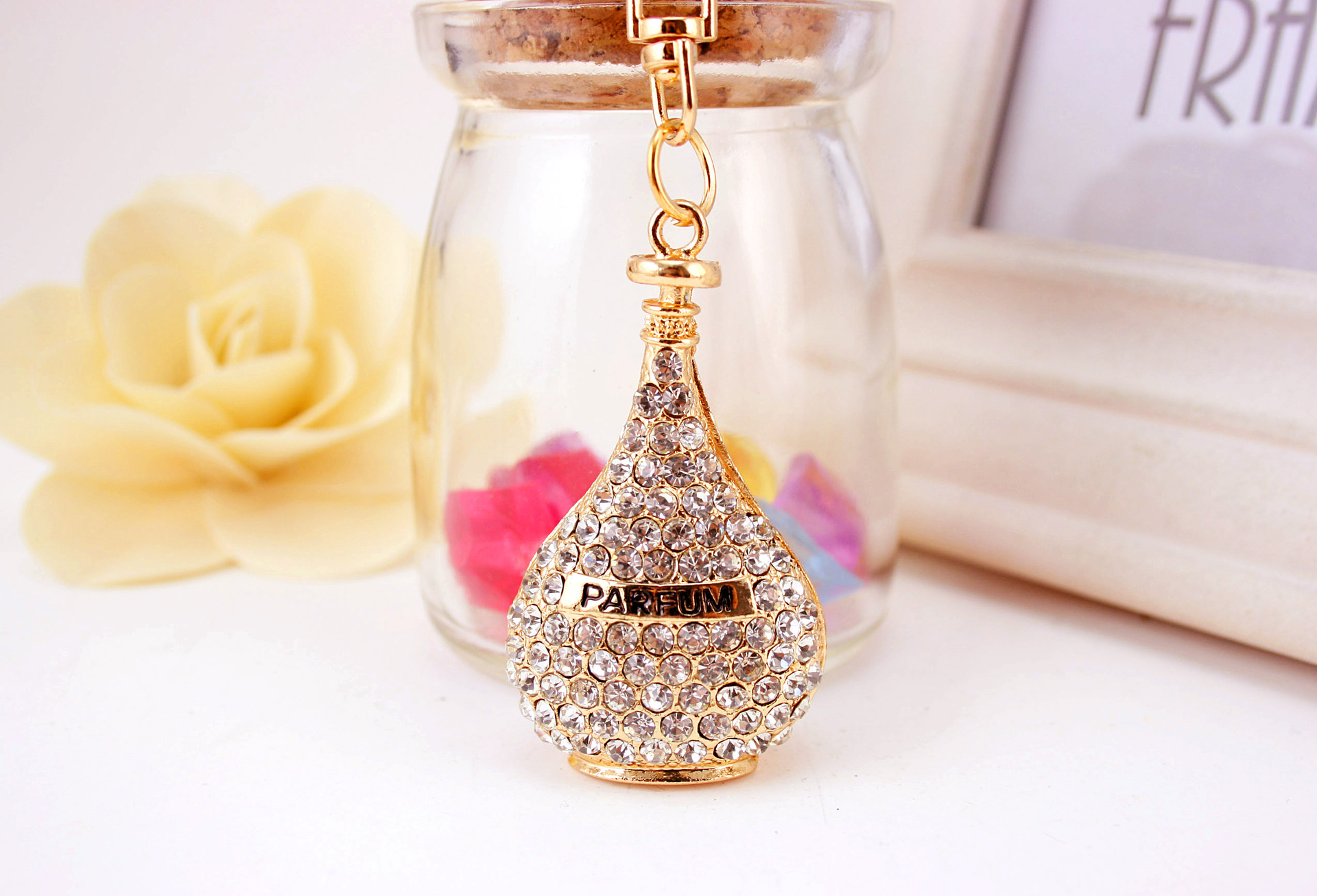Diamante Perfume Bottle Keyring Handbag Charm