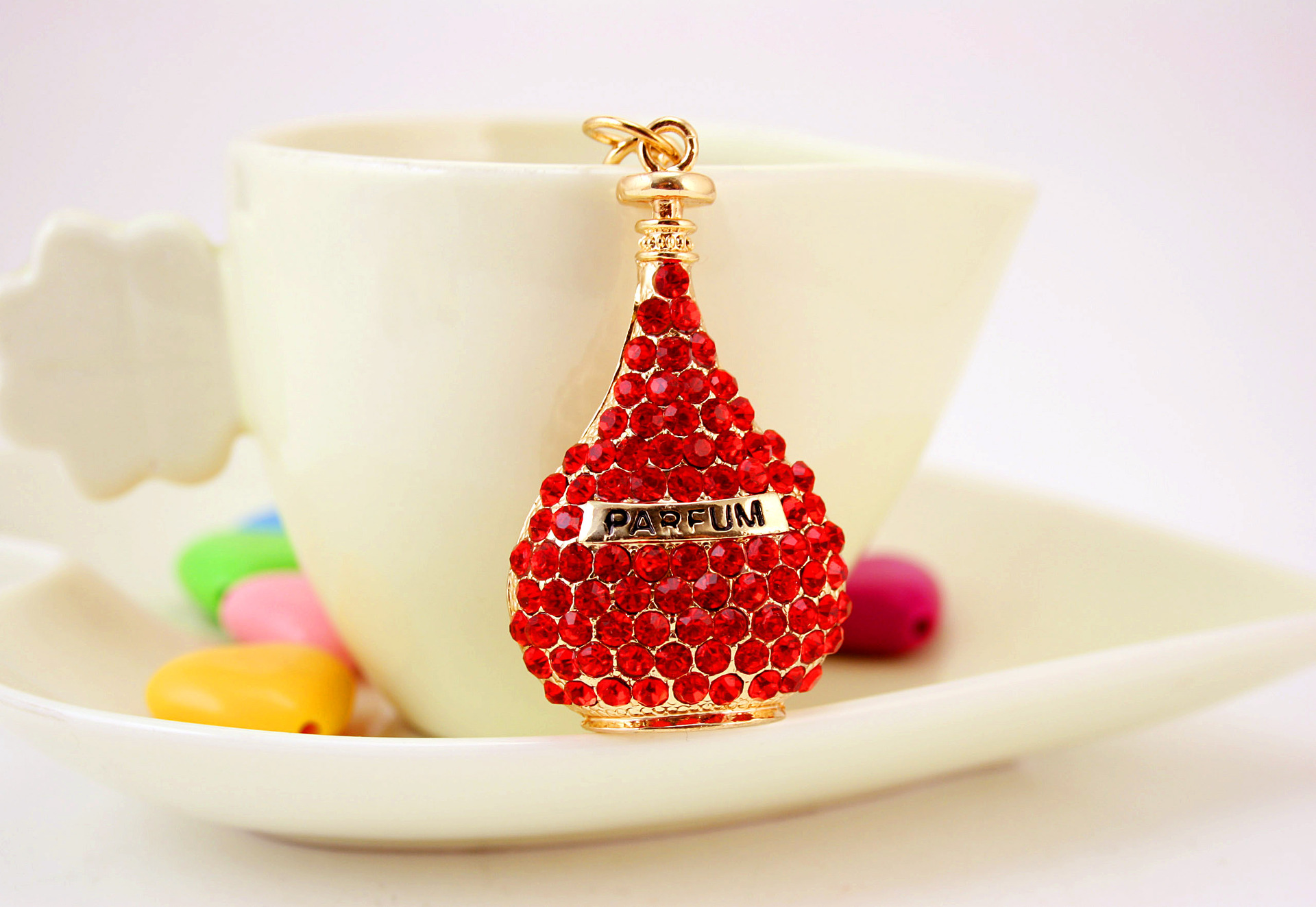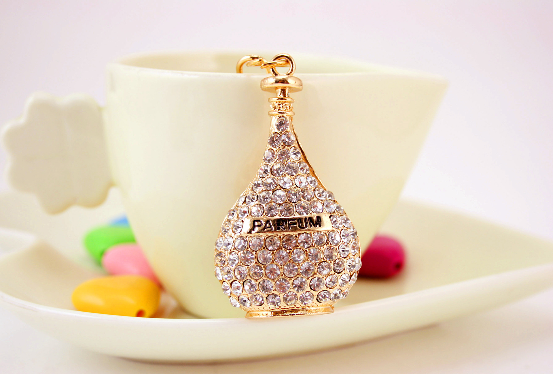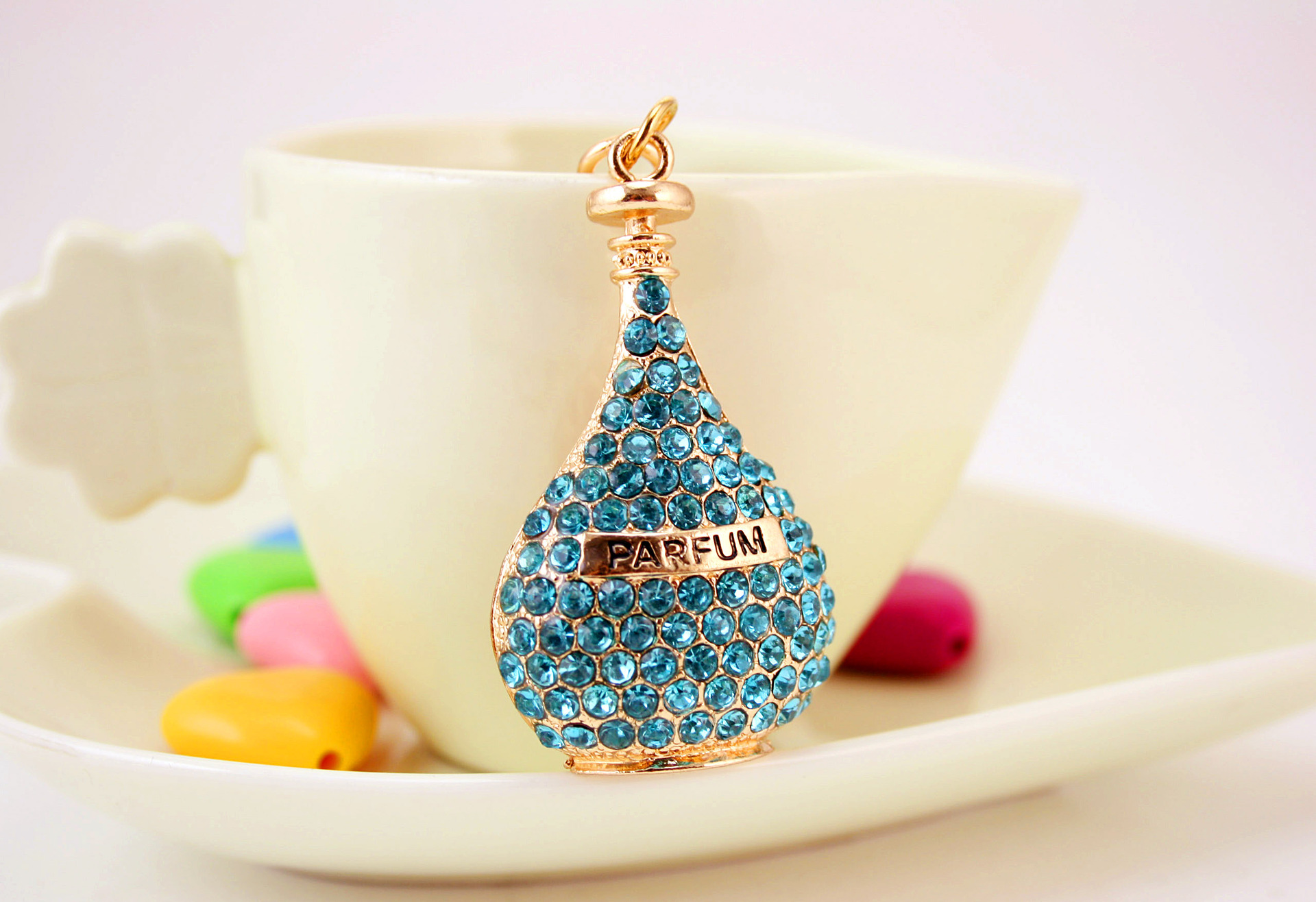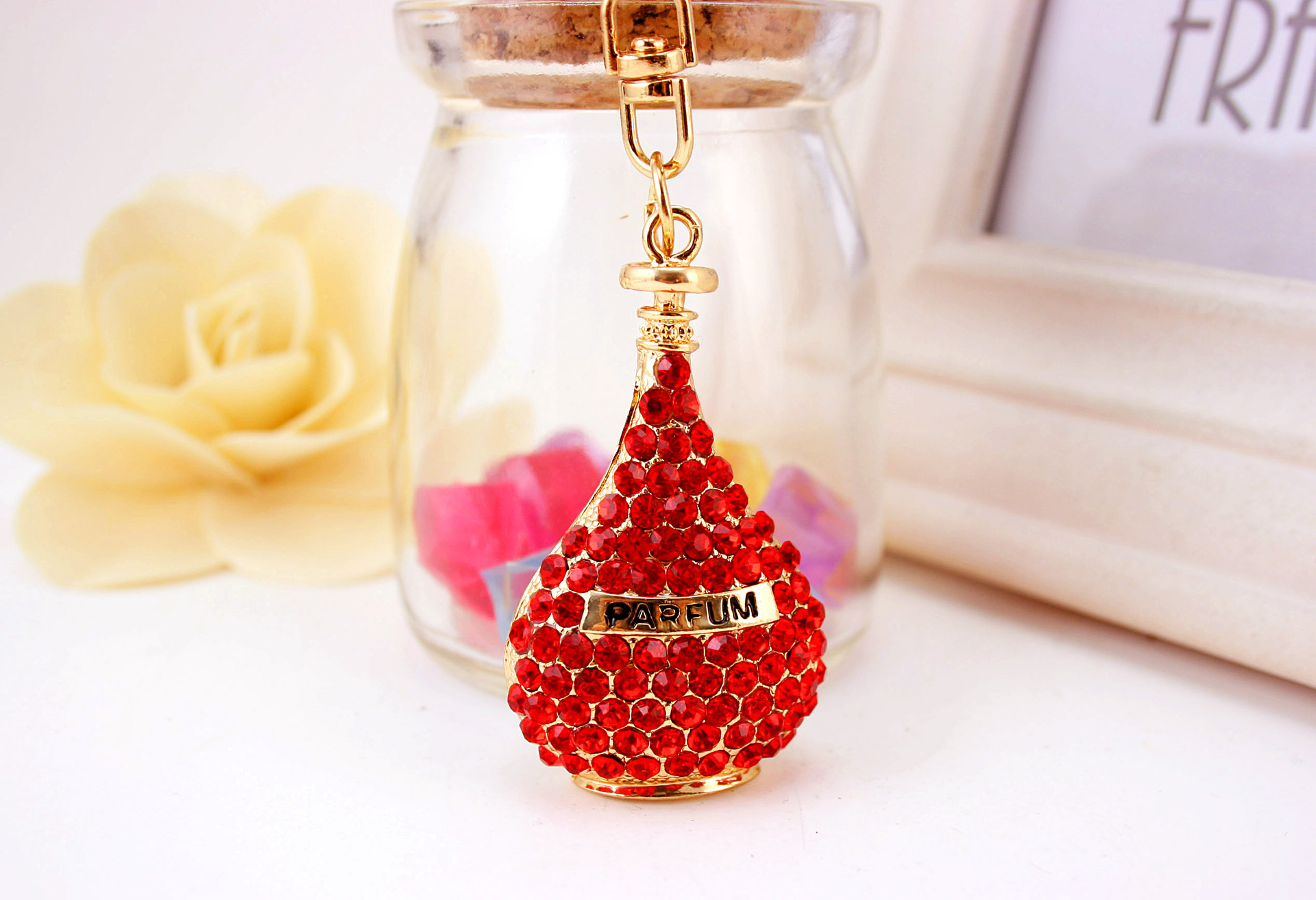 Diamante Perfume Bottle Keyring Handbag Charm