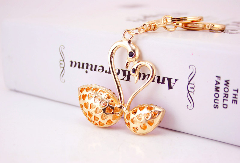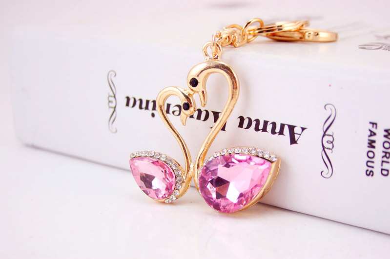 Name: Sparkling Rhinestone Swans Bag Charm Keyring