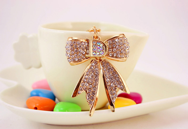 Details:Sparkling White Bow Letter D Crystal Diamante Bag Charms Handbag Keyring Pendant
