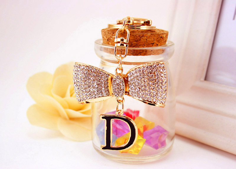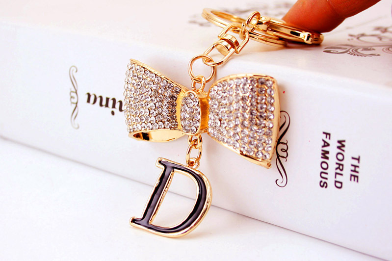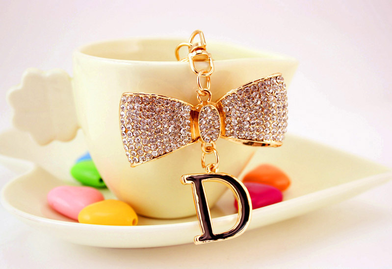 Details:Sparkling White Bow Letter D Crystal Diamante Bag Charms Handbag Keyring Pendant