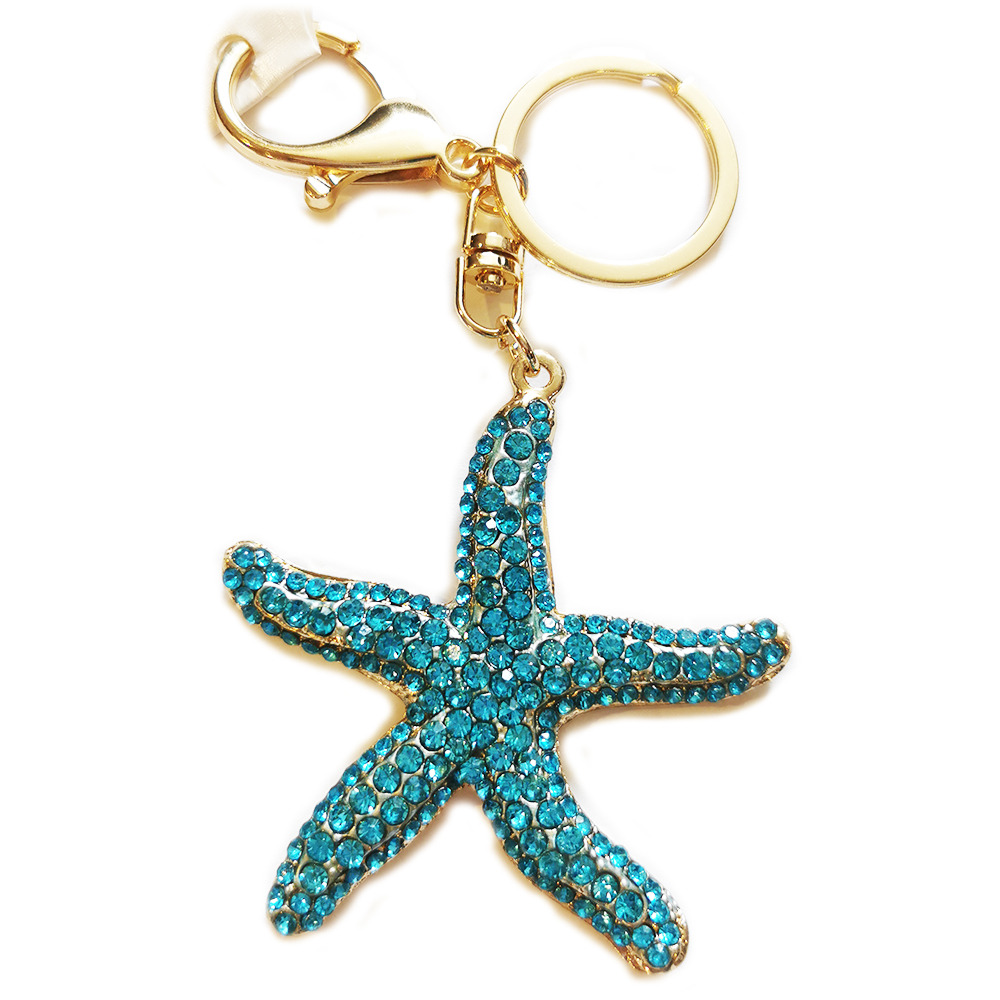 Starfish Sea Stars Animals Crystal Diamante Bag Charms Handbag Keyrings Pendant