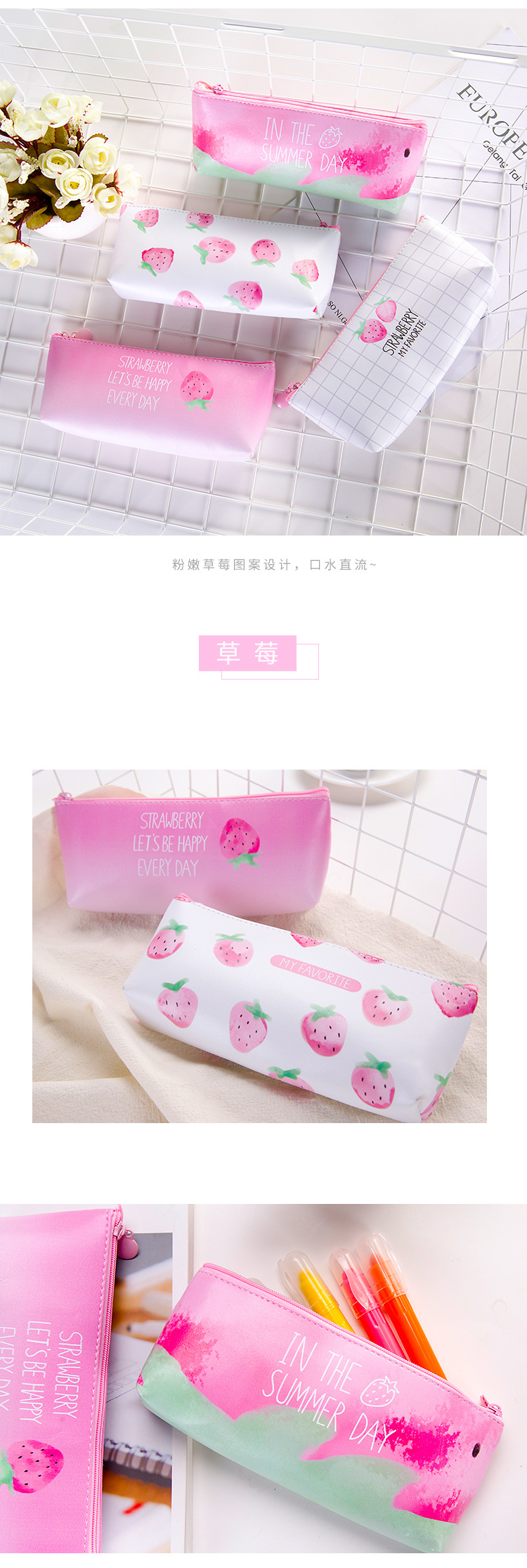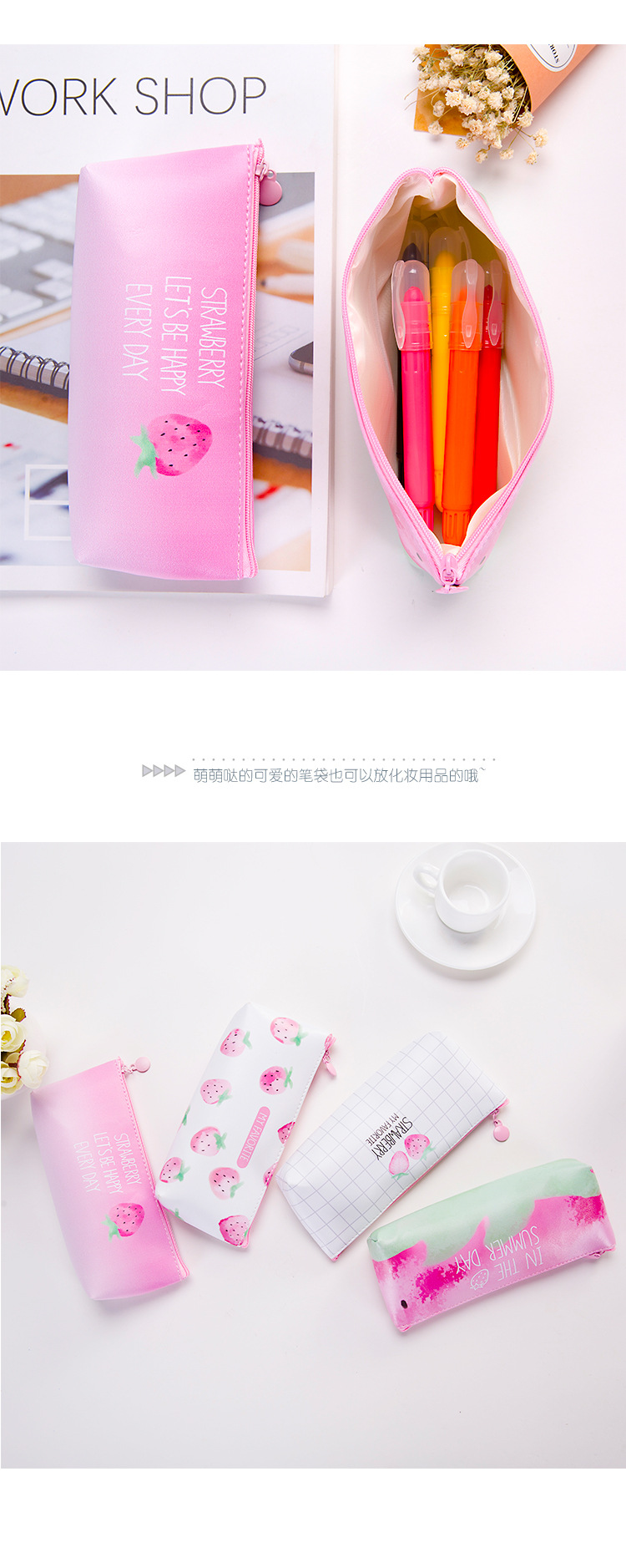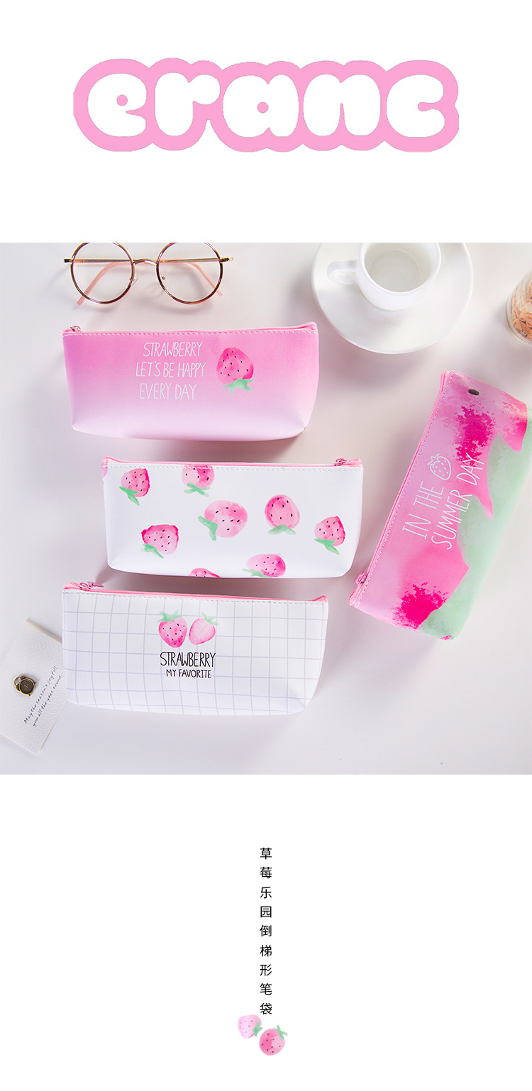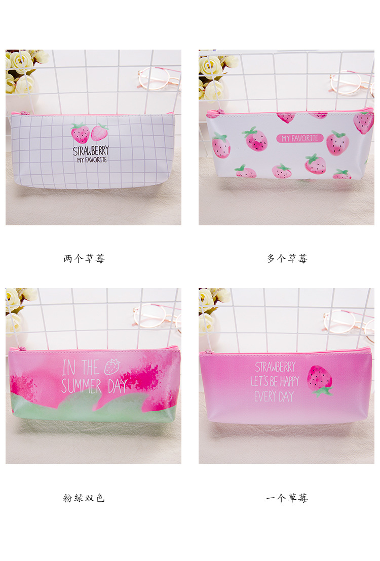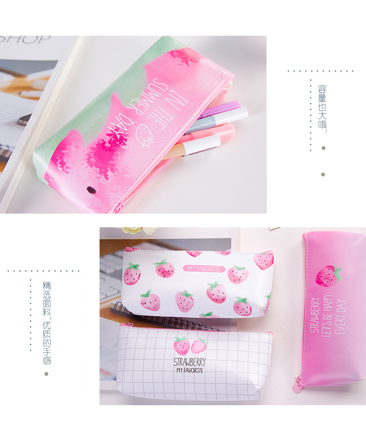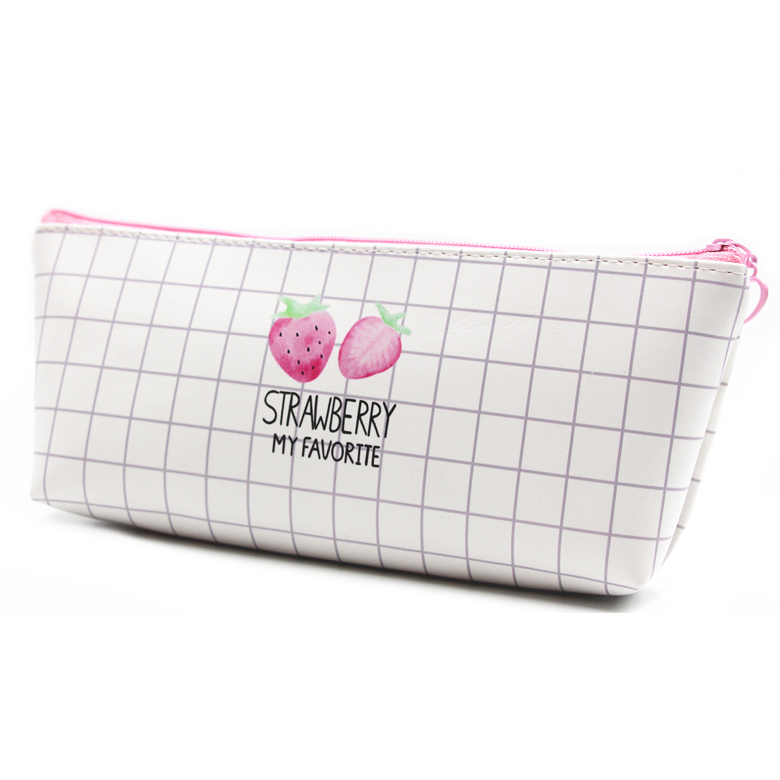 Strawberry Leather Cute Pencil Cases For Girls / Cool Pencil Cases For Boys / Cosmetics Make Up Bags