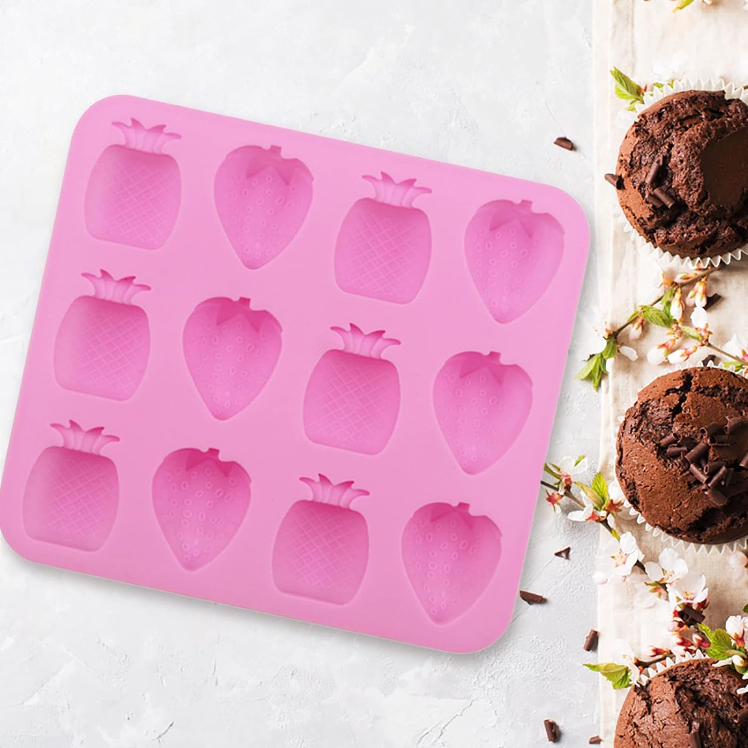 Strawberry Pineapple Summer Fruits Pink Silicone Chocolate Mould Ice Cube Mold