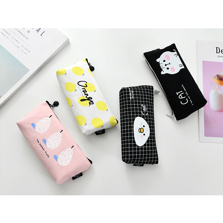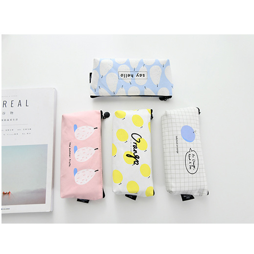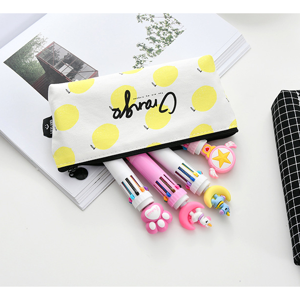 Summer Fruits Lemon Pear Orange Canvas Pencil Cases Cosmetics Make Up Bags