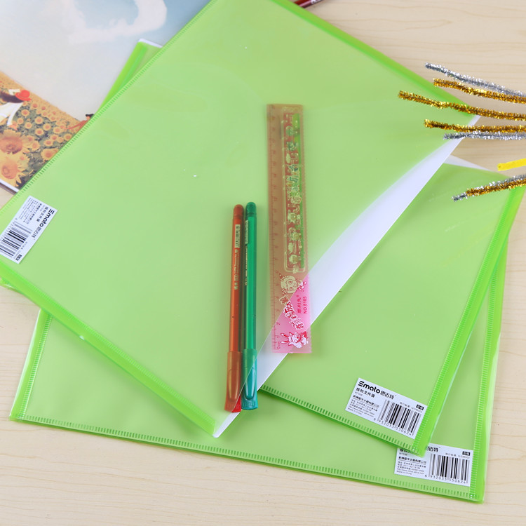 Each folder is made from a strong and lightweight plastic with a fold over triangle flap secured with a press stud.